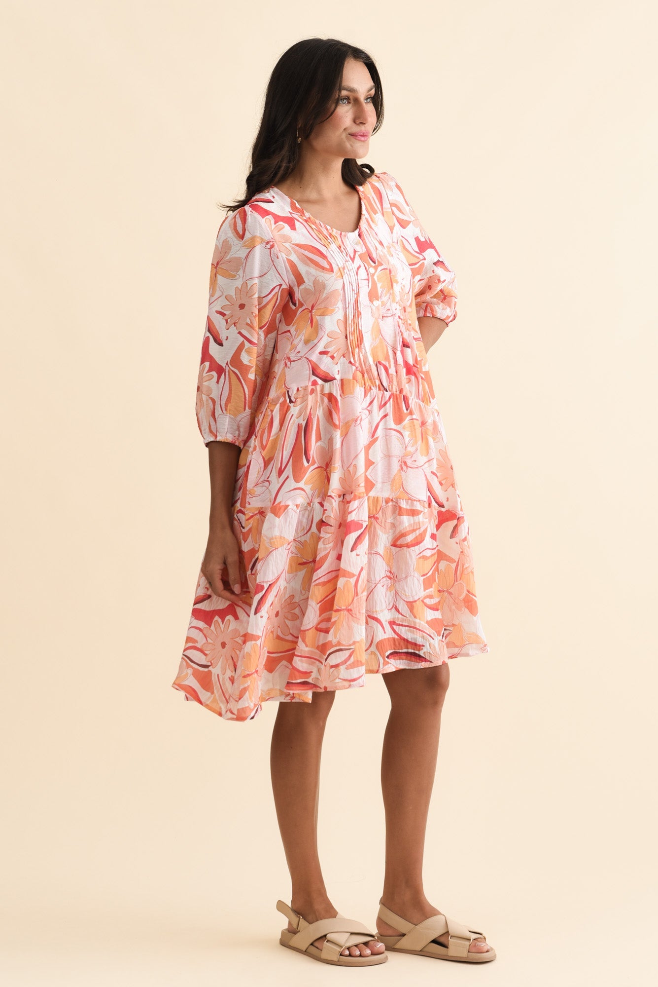 Esta Orange Flower Sleeved Dress