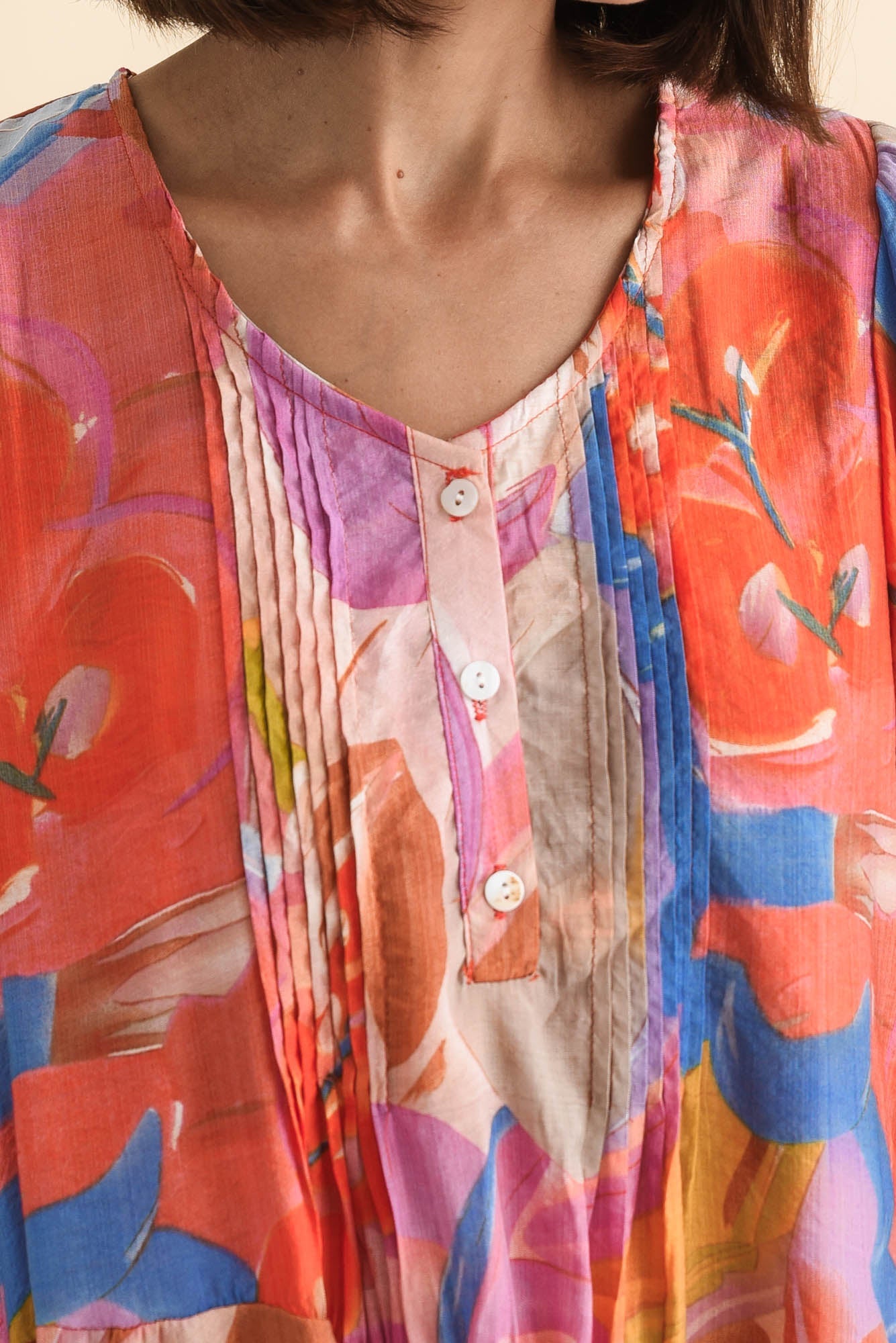 Esta Rust Abstract Sleeved Dress