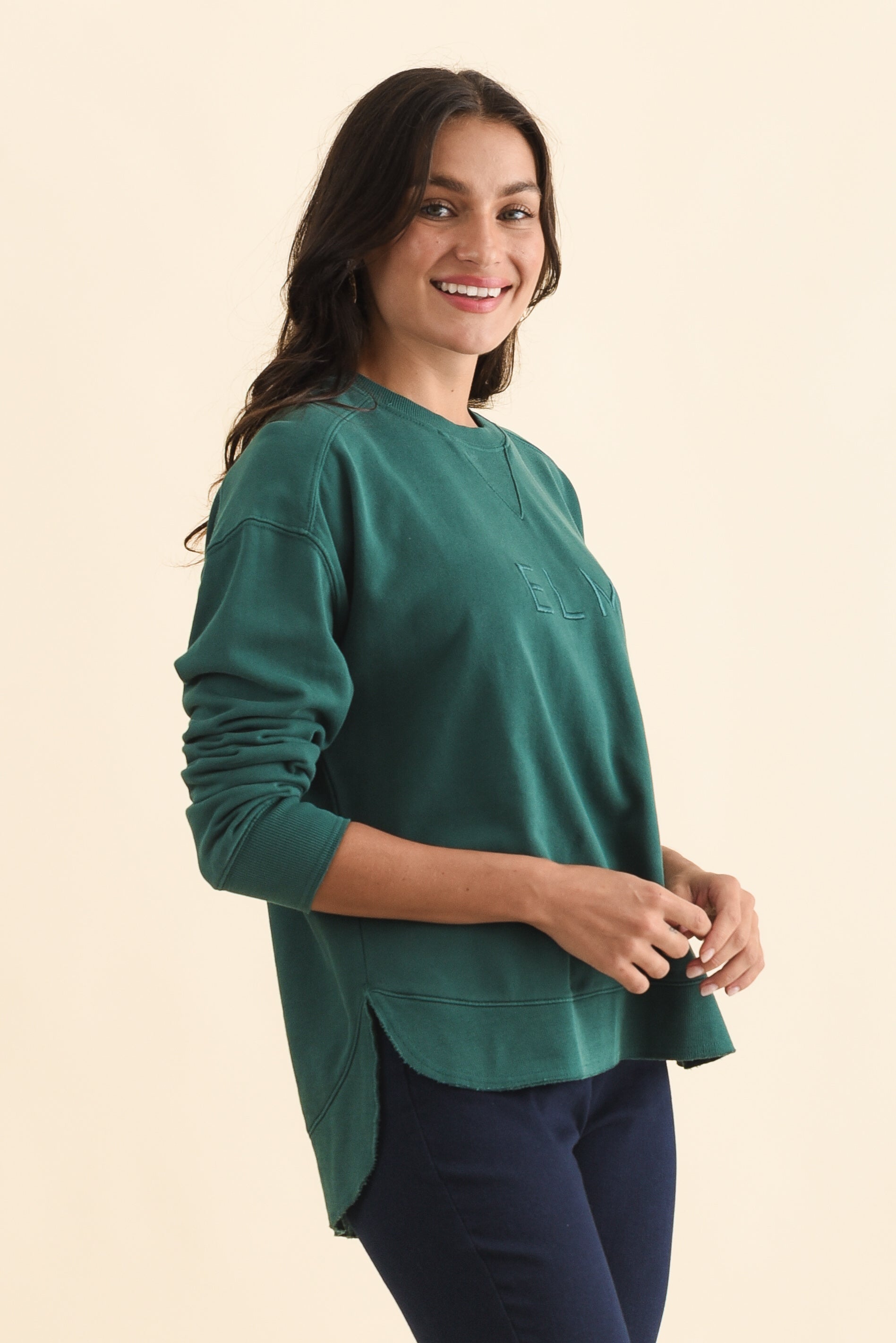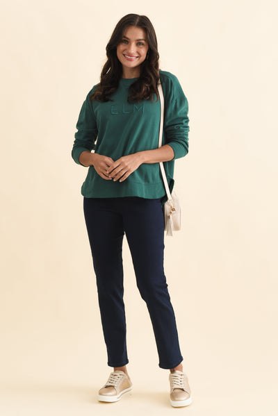 Established Teal Cotton Crewneck Sweatshirt