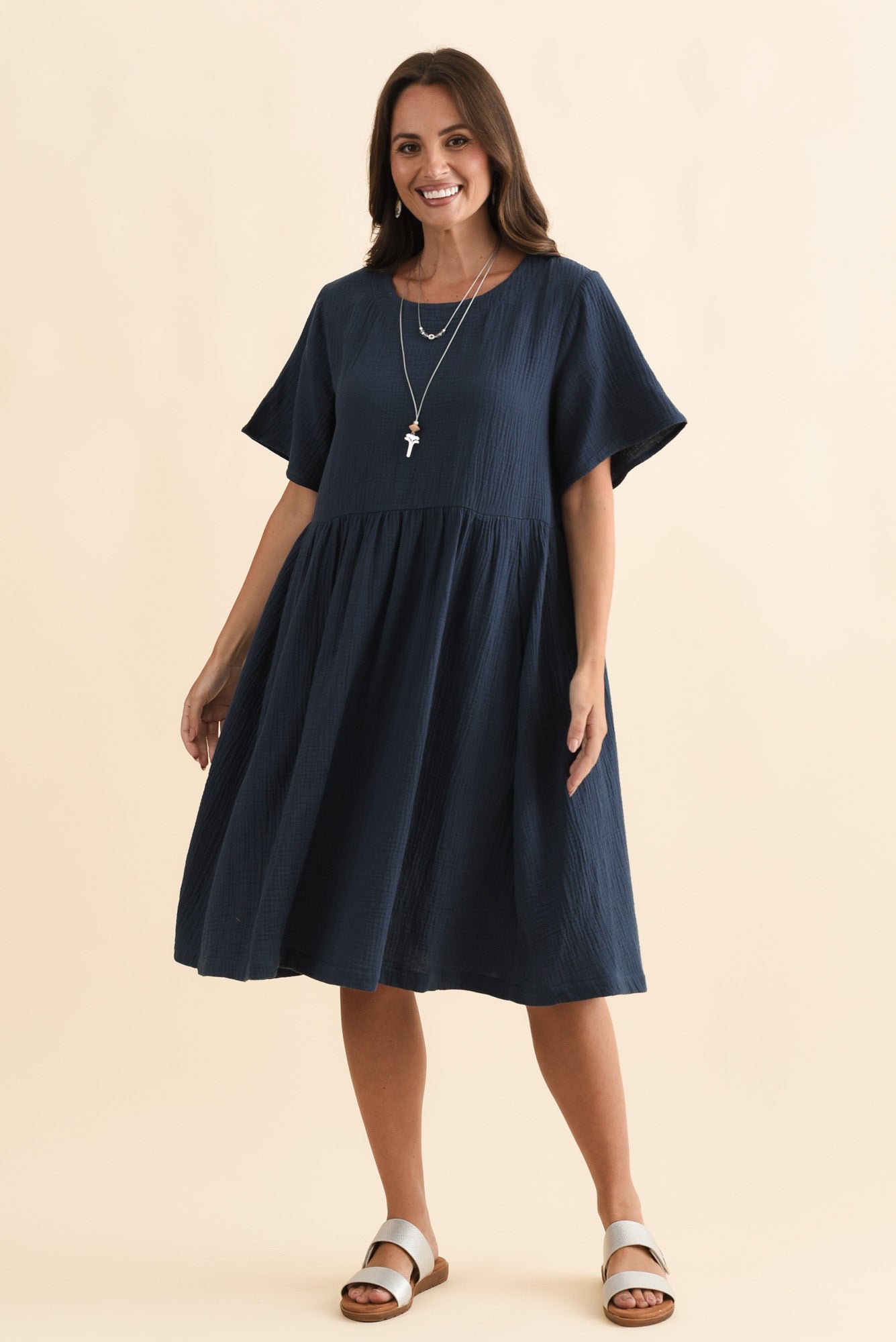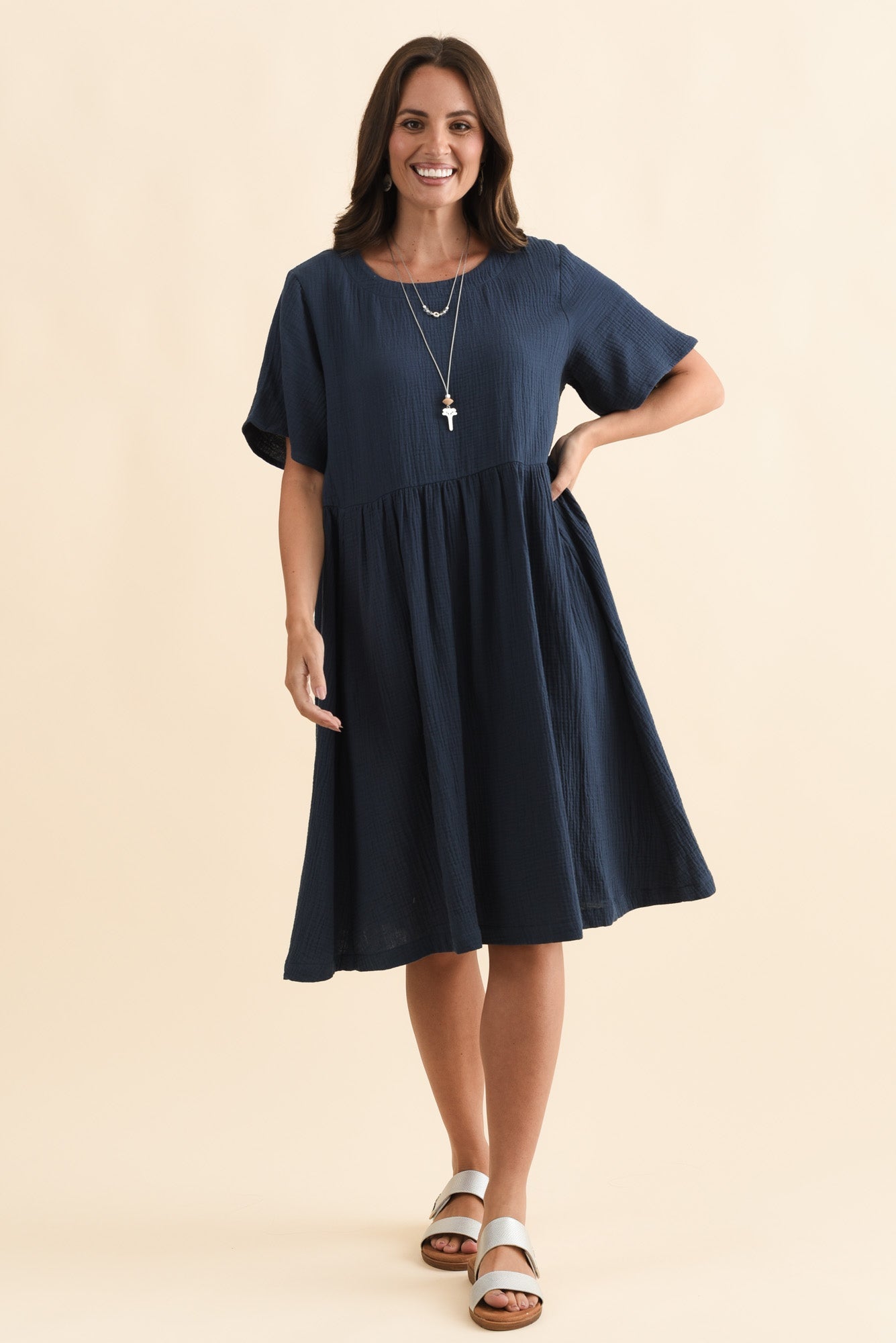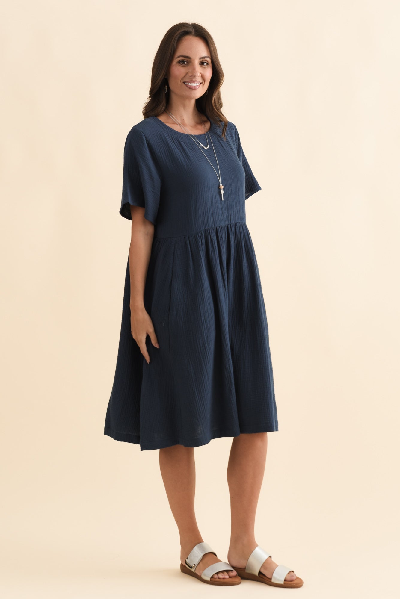 Ethel Navy Cotton Cheesecloth Dress