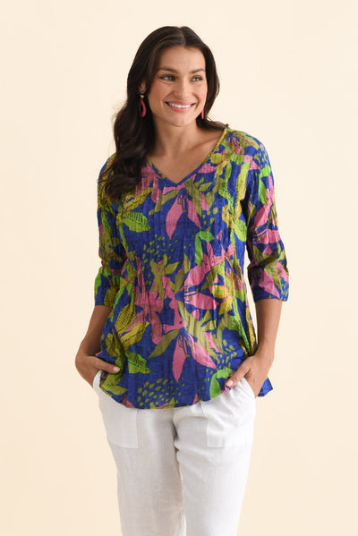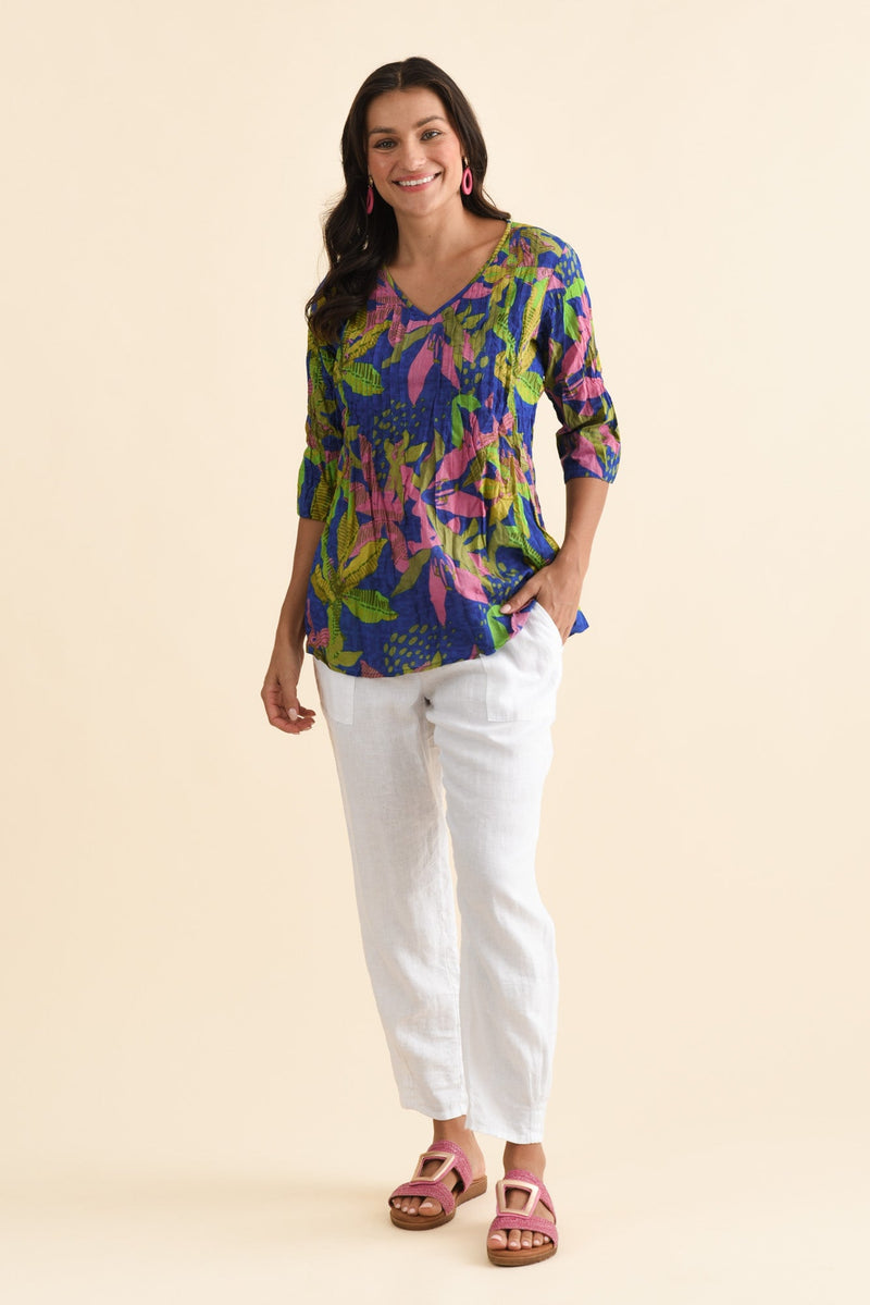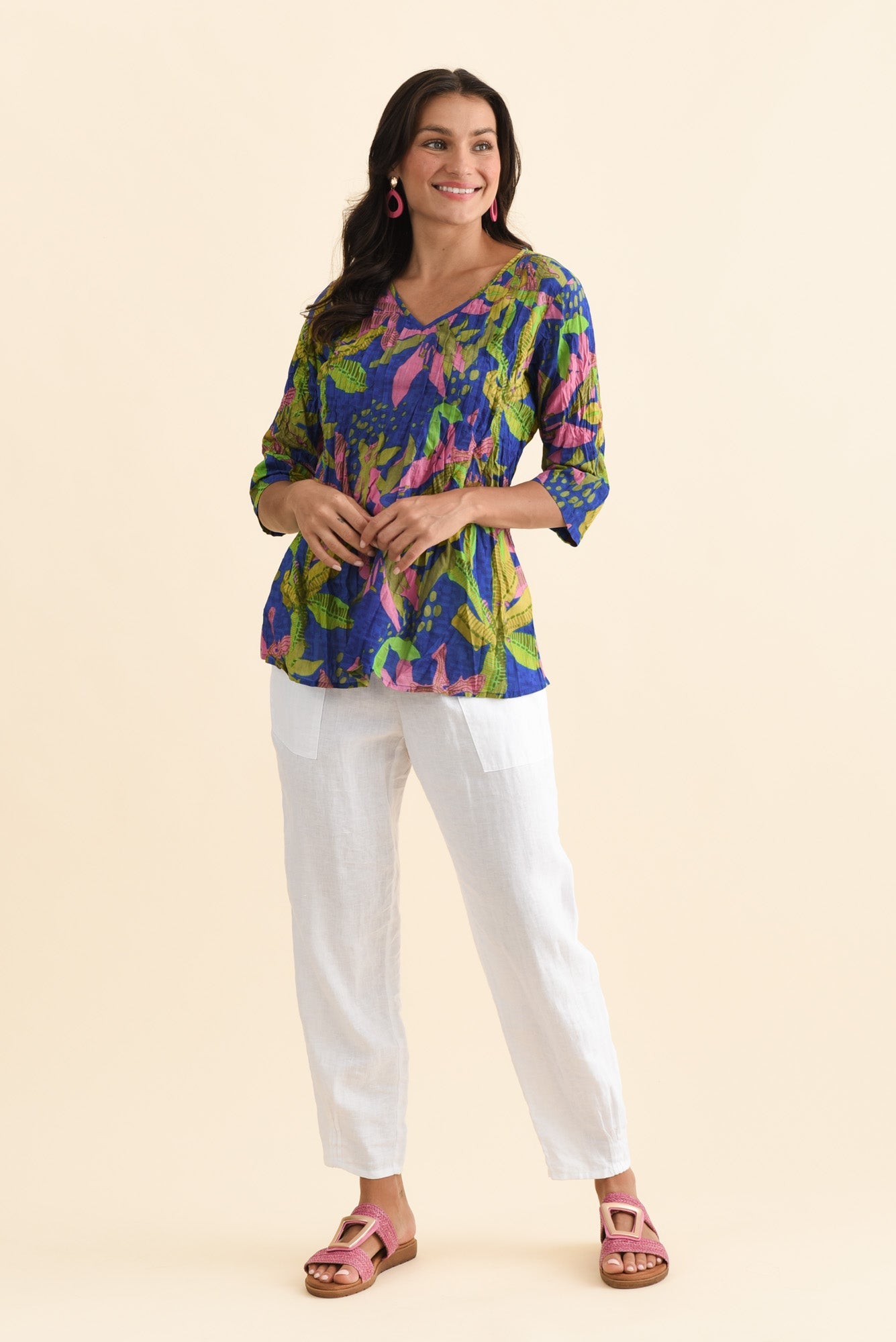 Fia Blue Lily Sleeved Crinkle Cotton Top