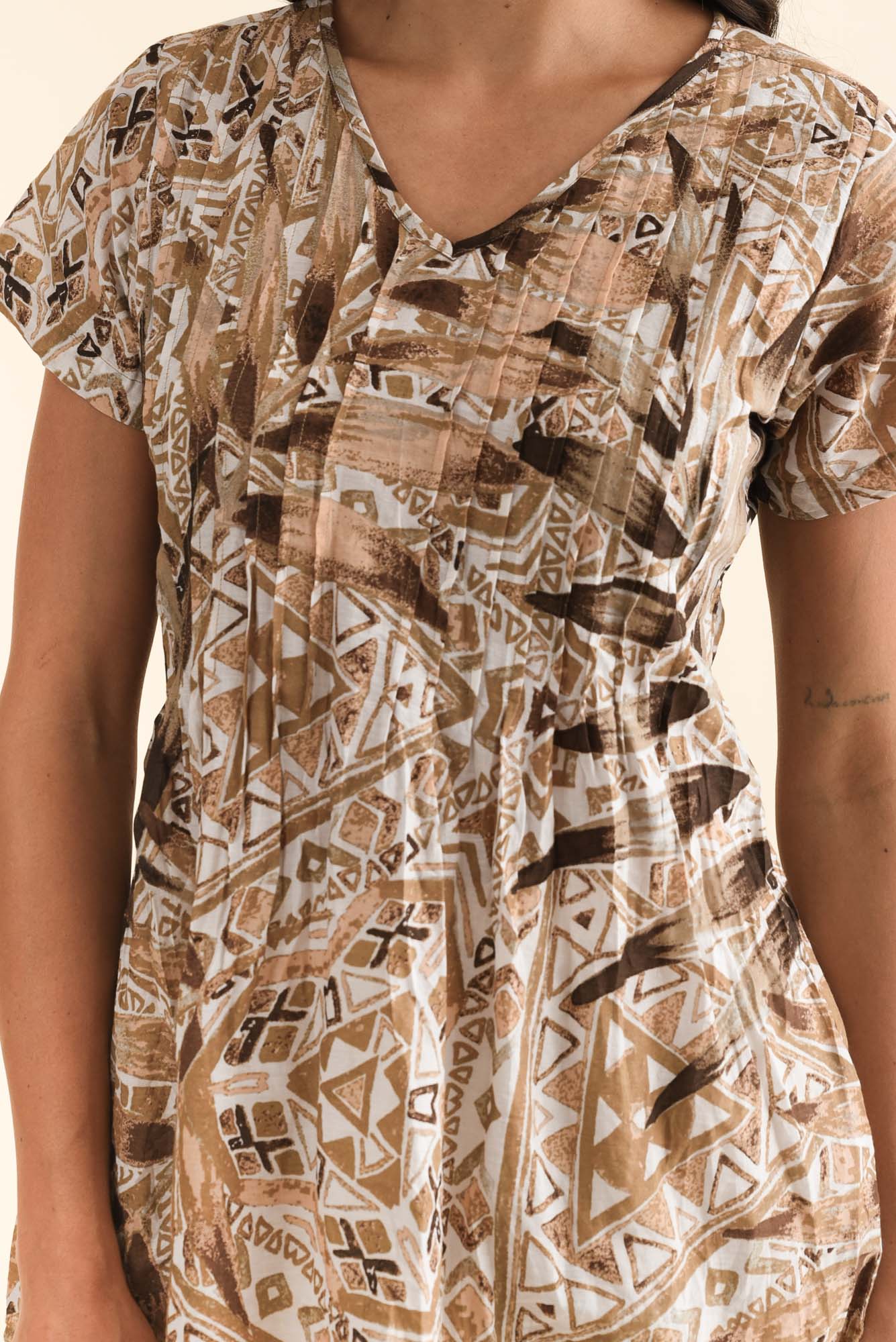 FIA BROWN AZTEC LEAF CRINKLE COTTON TOP