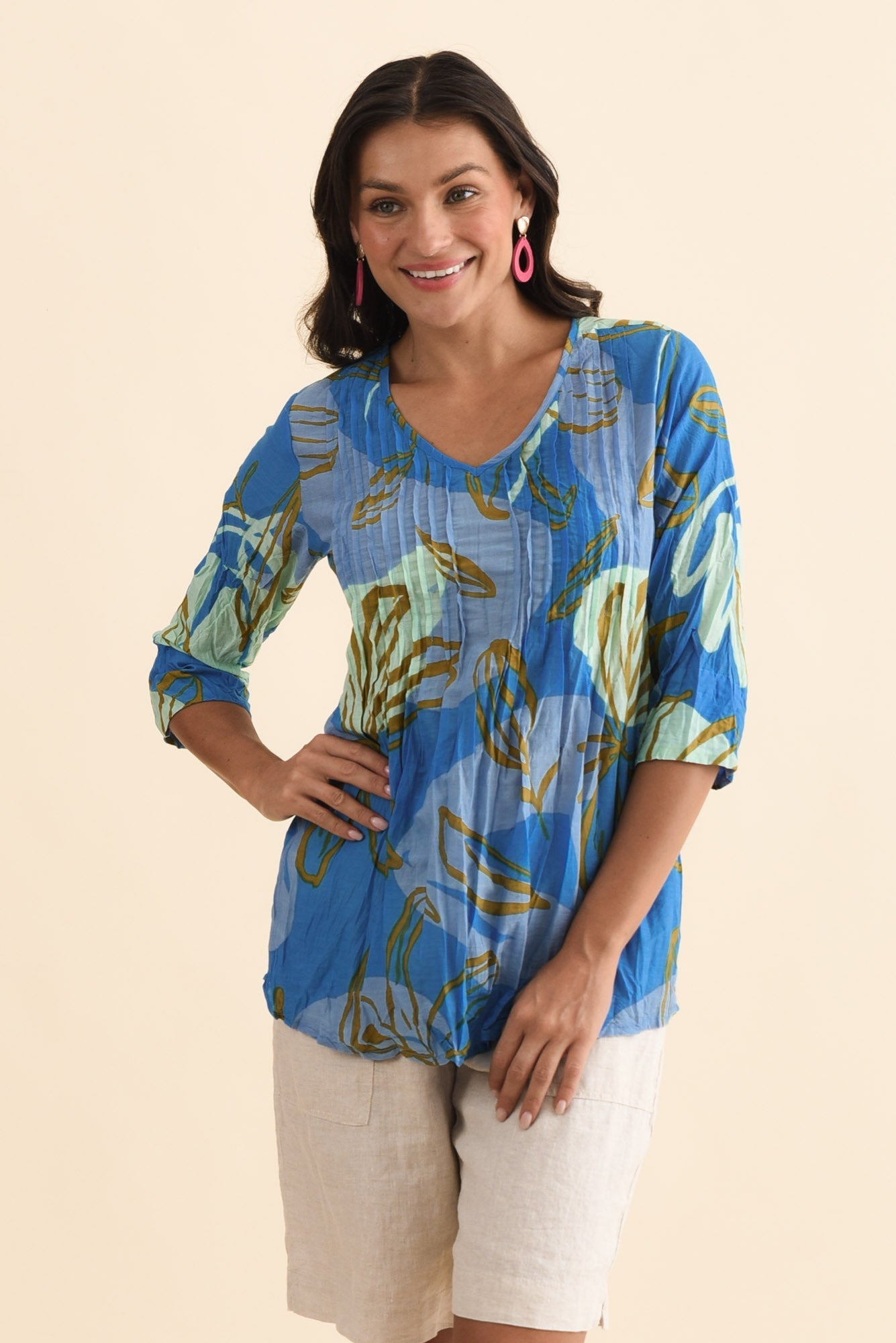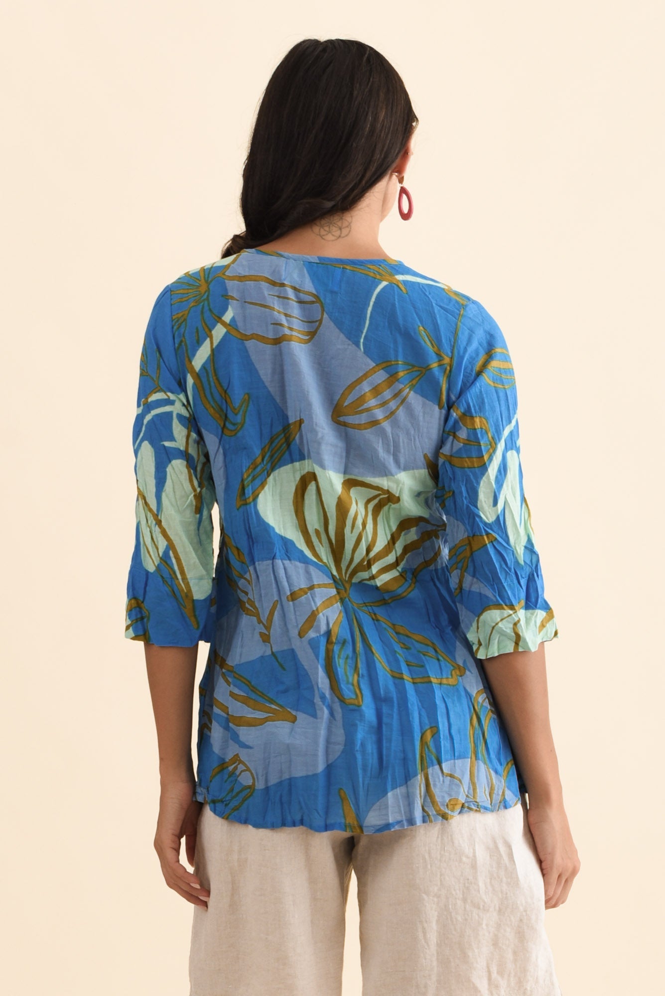 FIA COBALT LILY SLEEVED CRINKLE COTTON TOP