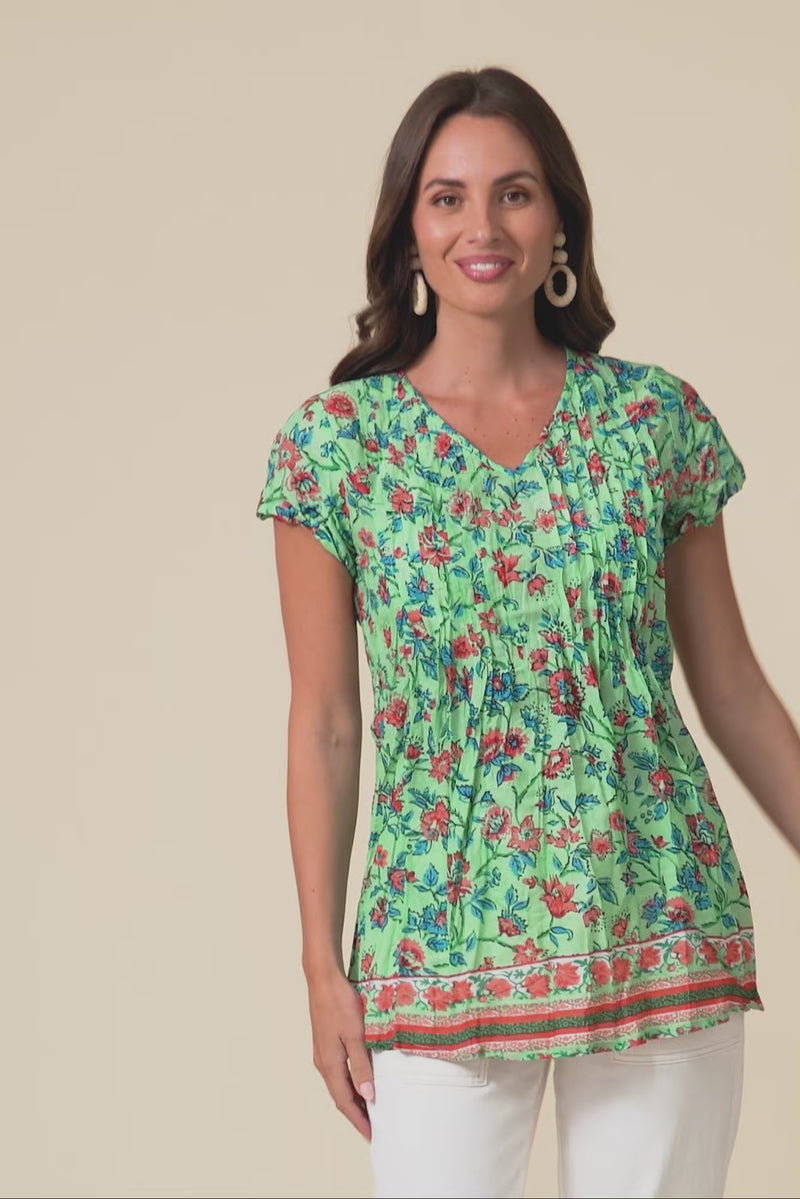 Fia Mint Garden Crinkle Cotton Top