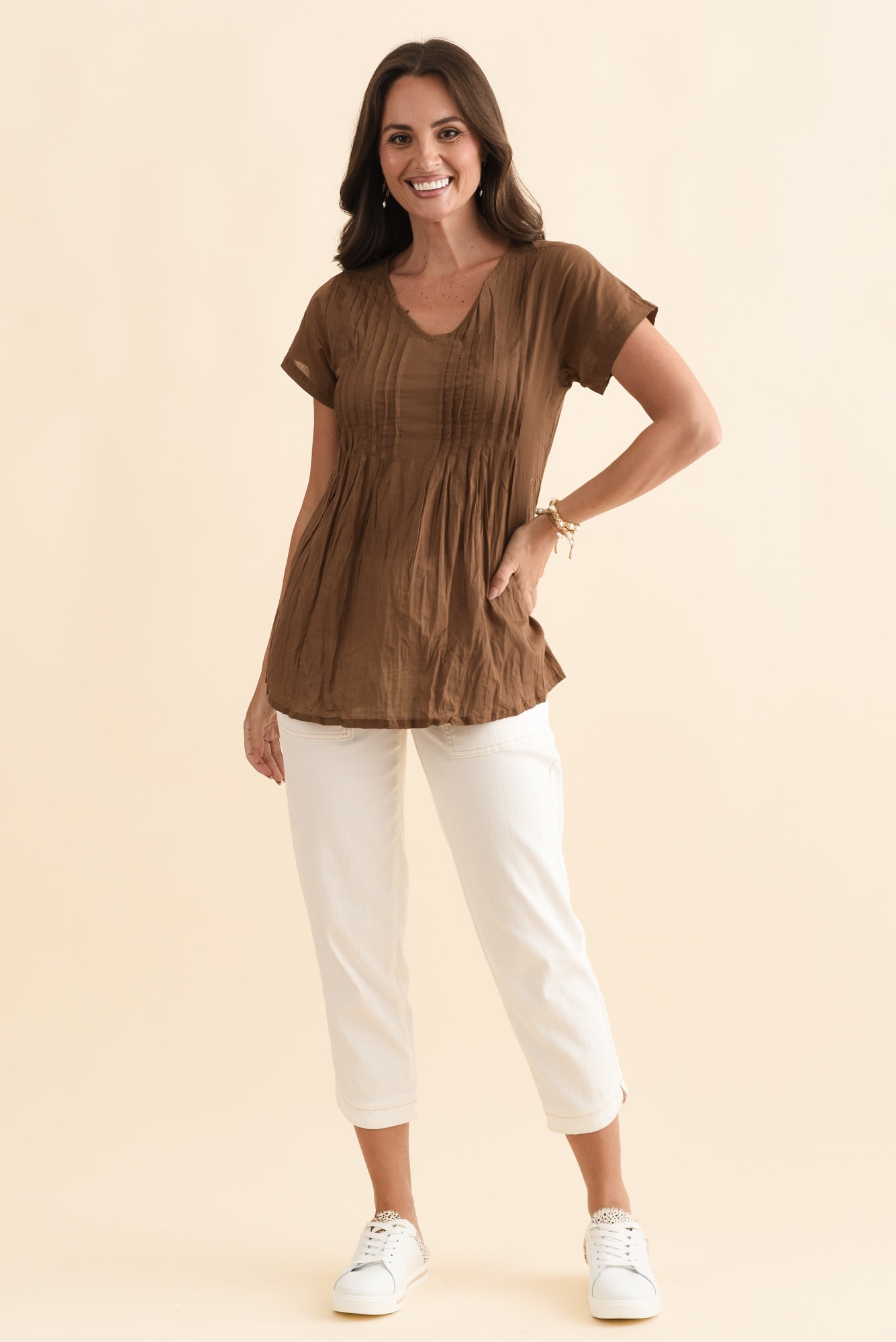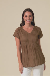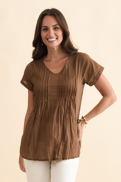 Fia Mocha Crinkle Cotton Top