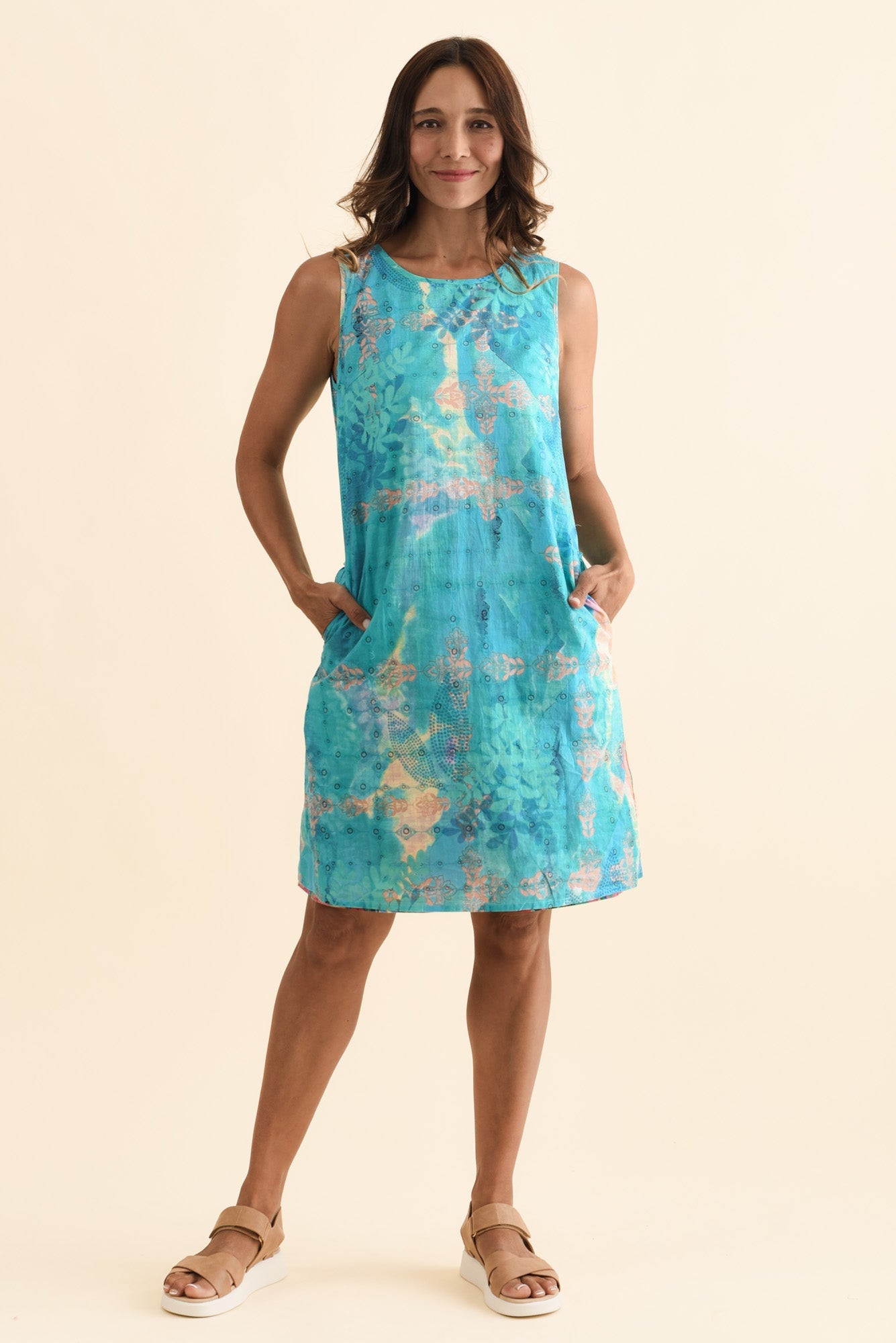 FRENCHIE BLUE TROPICAL REVERSIBLE COTTON DRESS