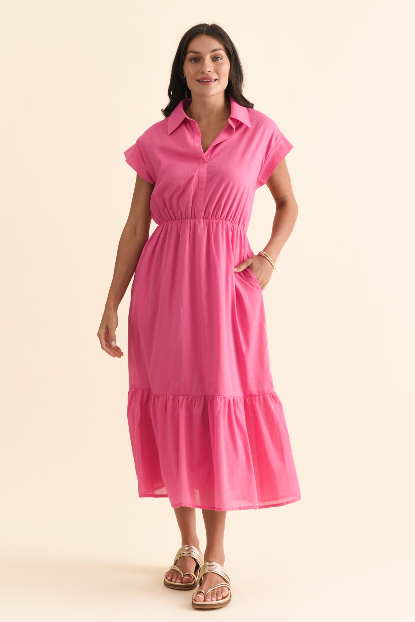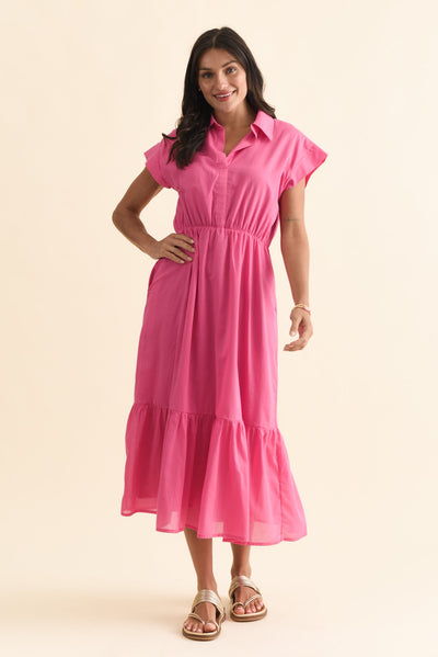 Freya Pink Cotton Collared Dress