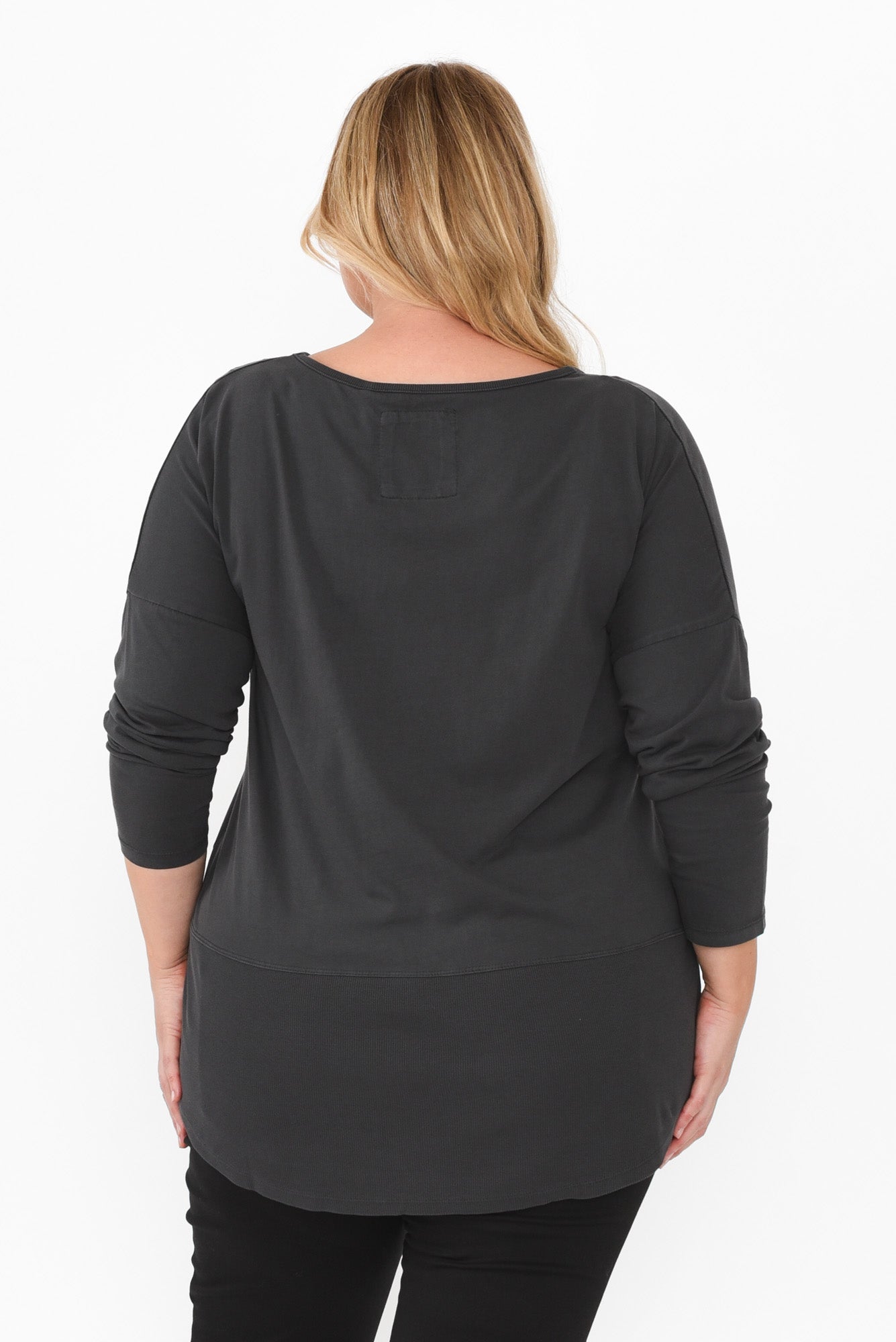 FUNDAMENTAL WASHED BLACK COTTON RIB SLEEVED TOP