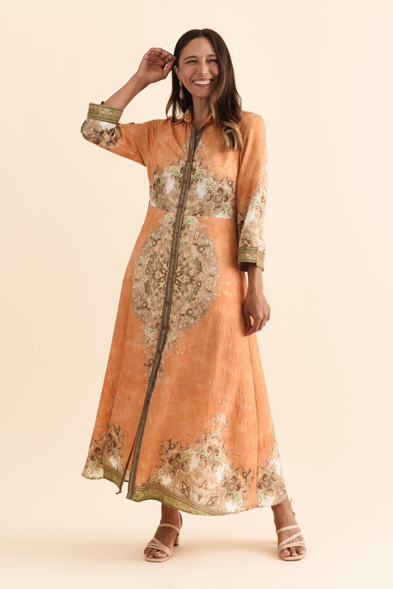 GABY ORANGE ABSTRACT COTTON LINEN DRESS