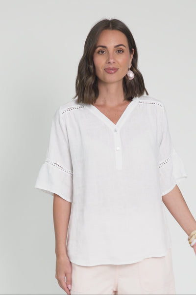 Gemma White Linen Button Top
