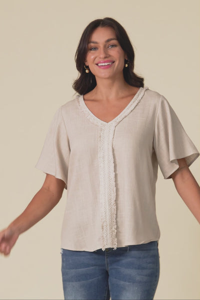 Georgio Taupe Linen Top