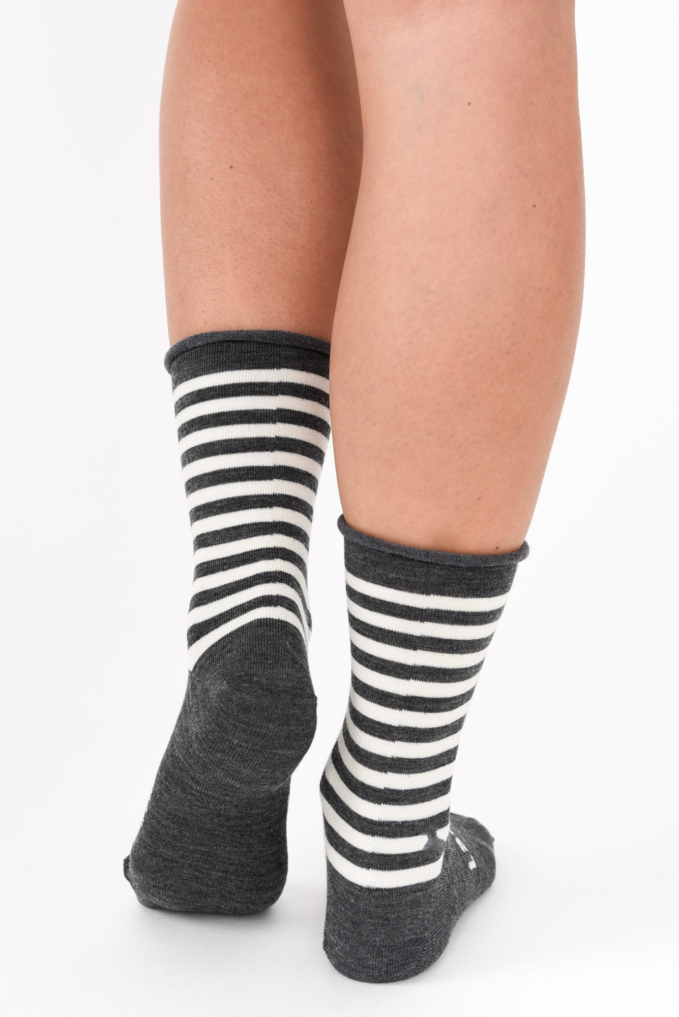 Grey Stripe Merino Wool Rolled Crew Socks