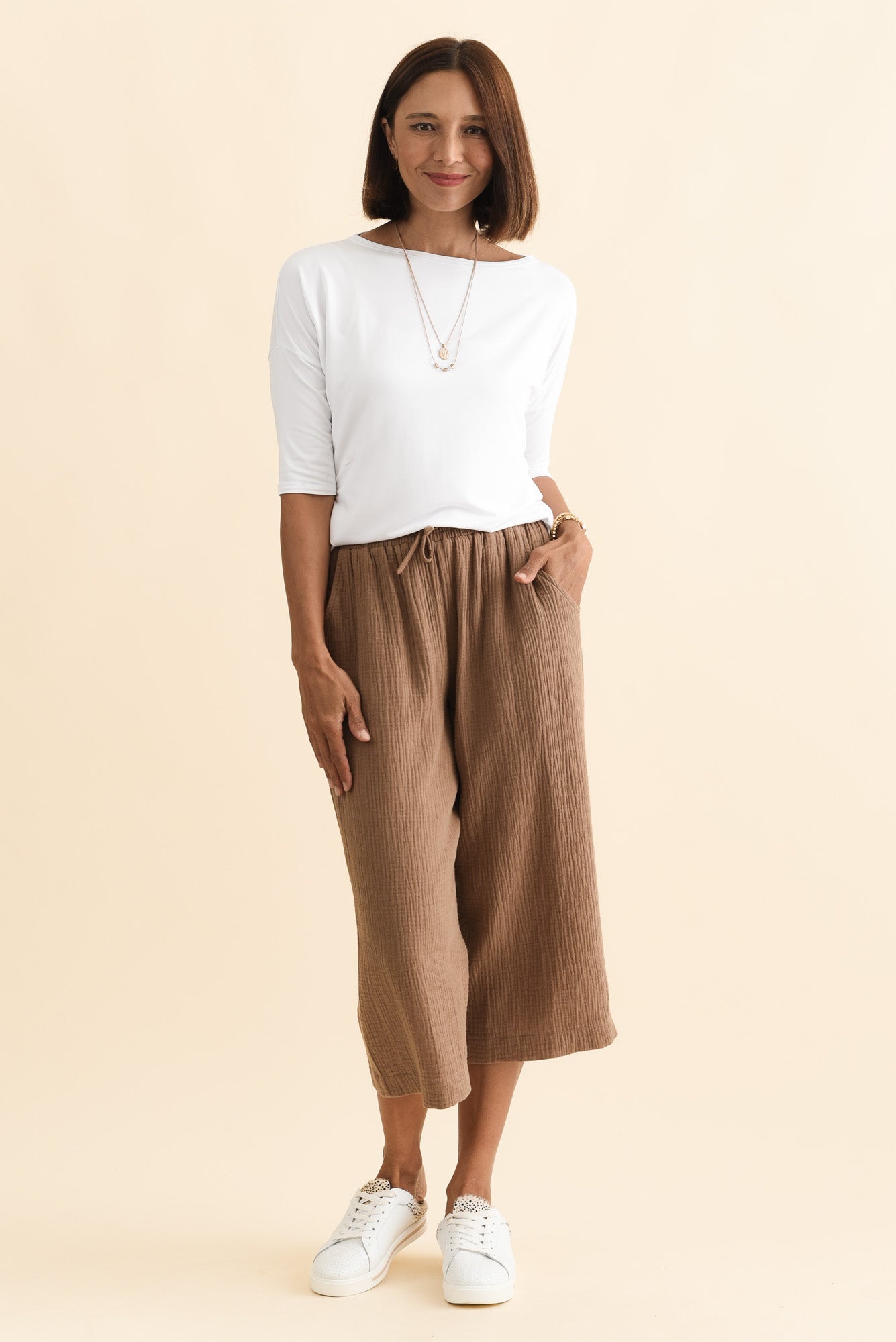 Harvey Mocha Cotton Cheesecloth Cropped Pants