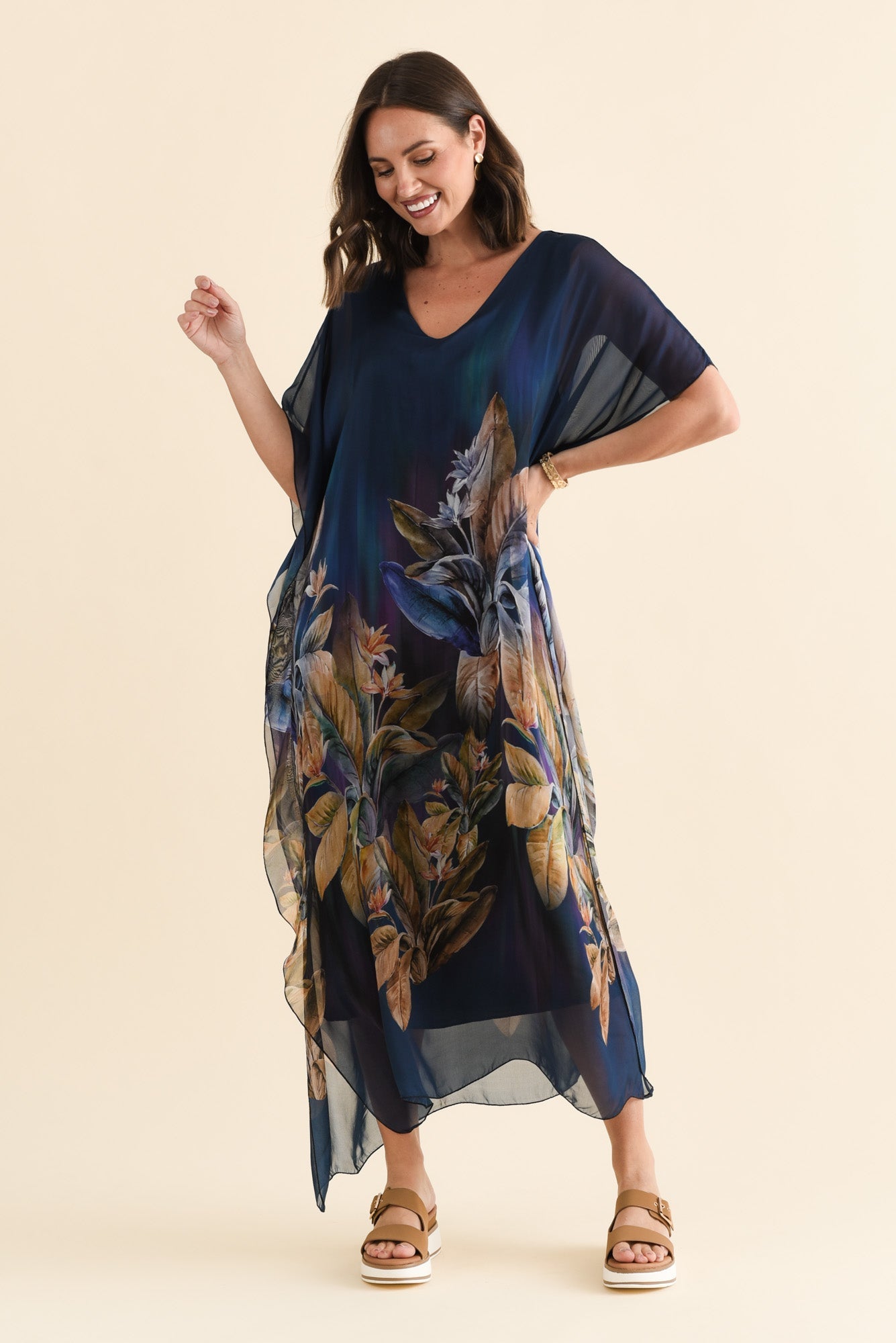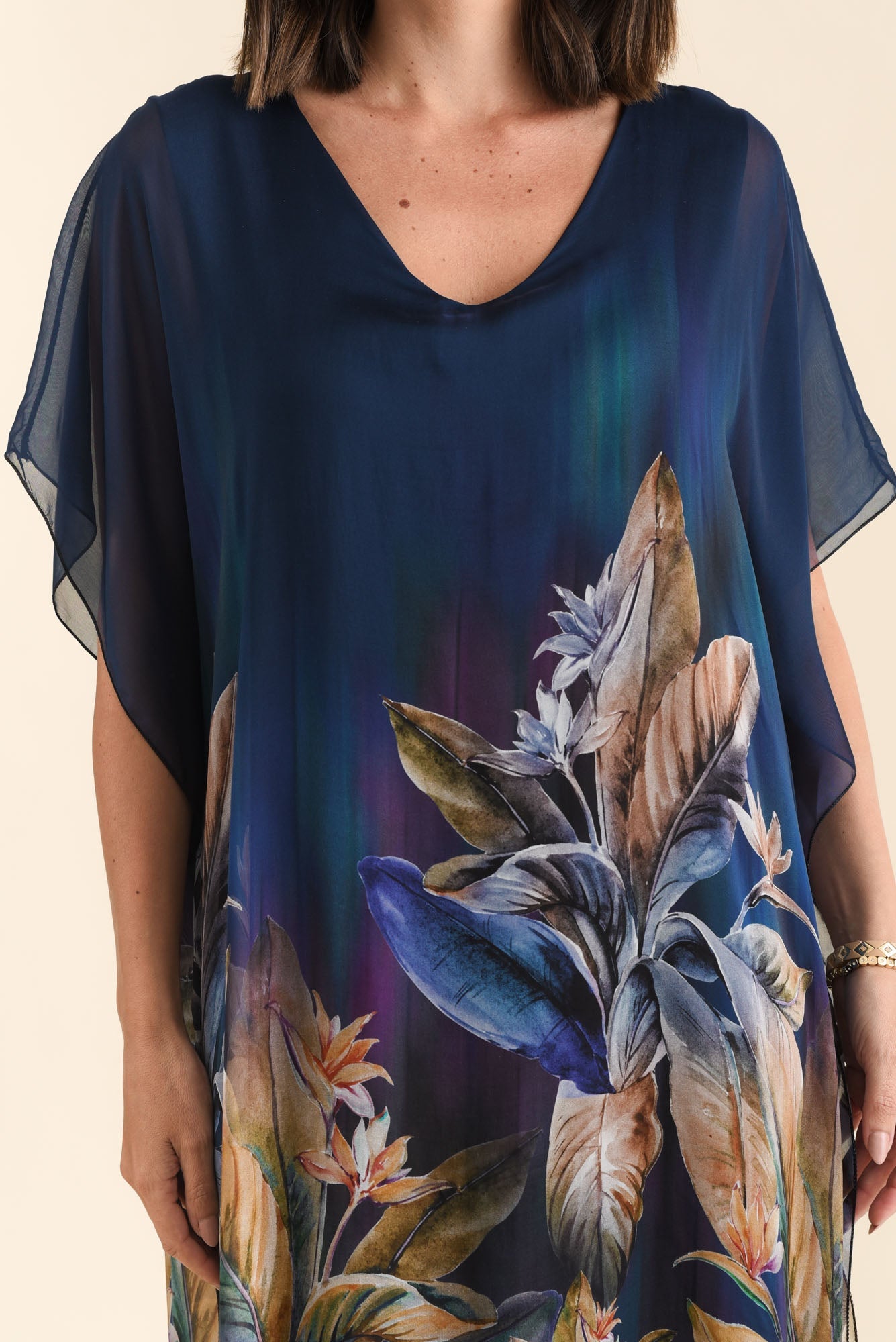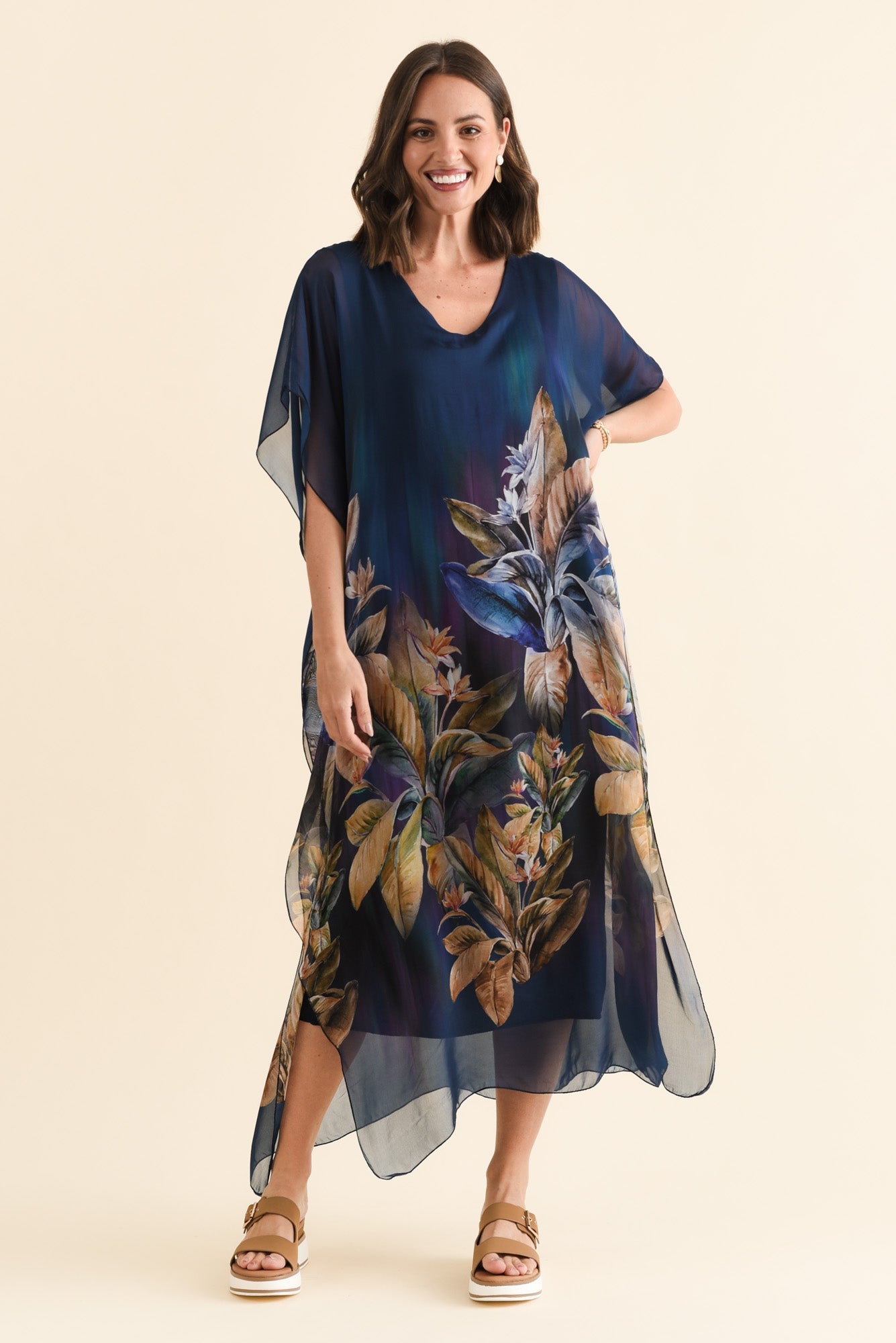 HAVANA NAVY BOTANICAL SILK DRESS