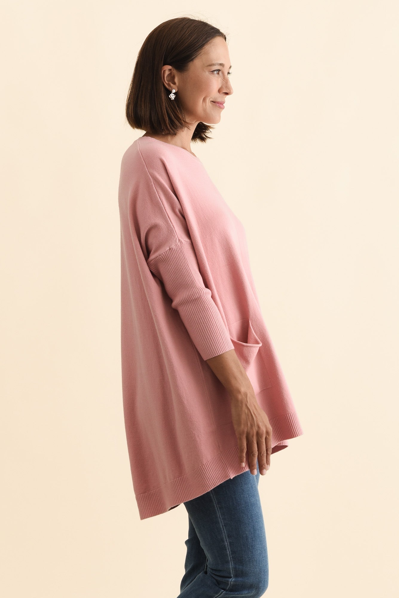 - 3/4 length sleeves taper gently across the forearm for a flattering, easy-to-layer fit