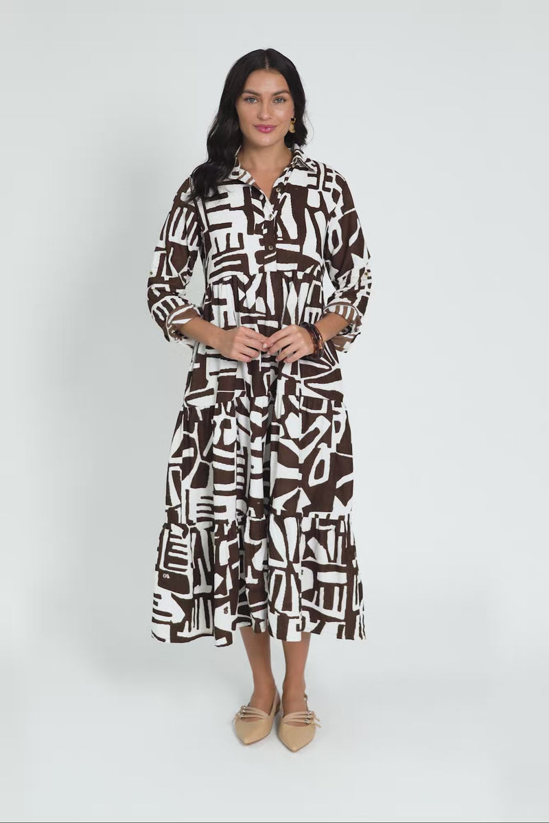 Hilda Chocolate Geo Cotton Corduroy Dress