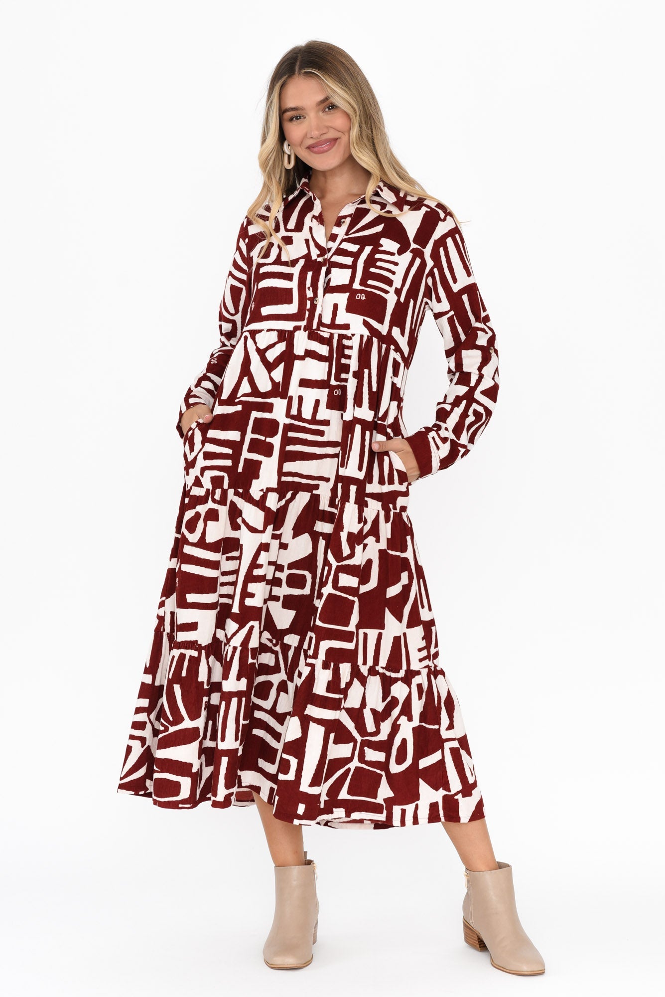 Hilda Red Geo Cotton Corduroy Dress