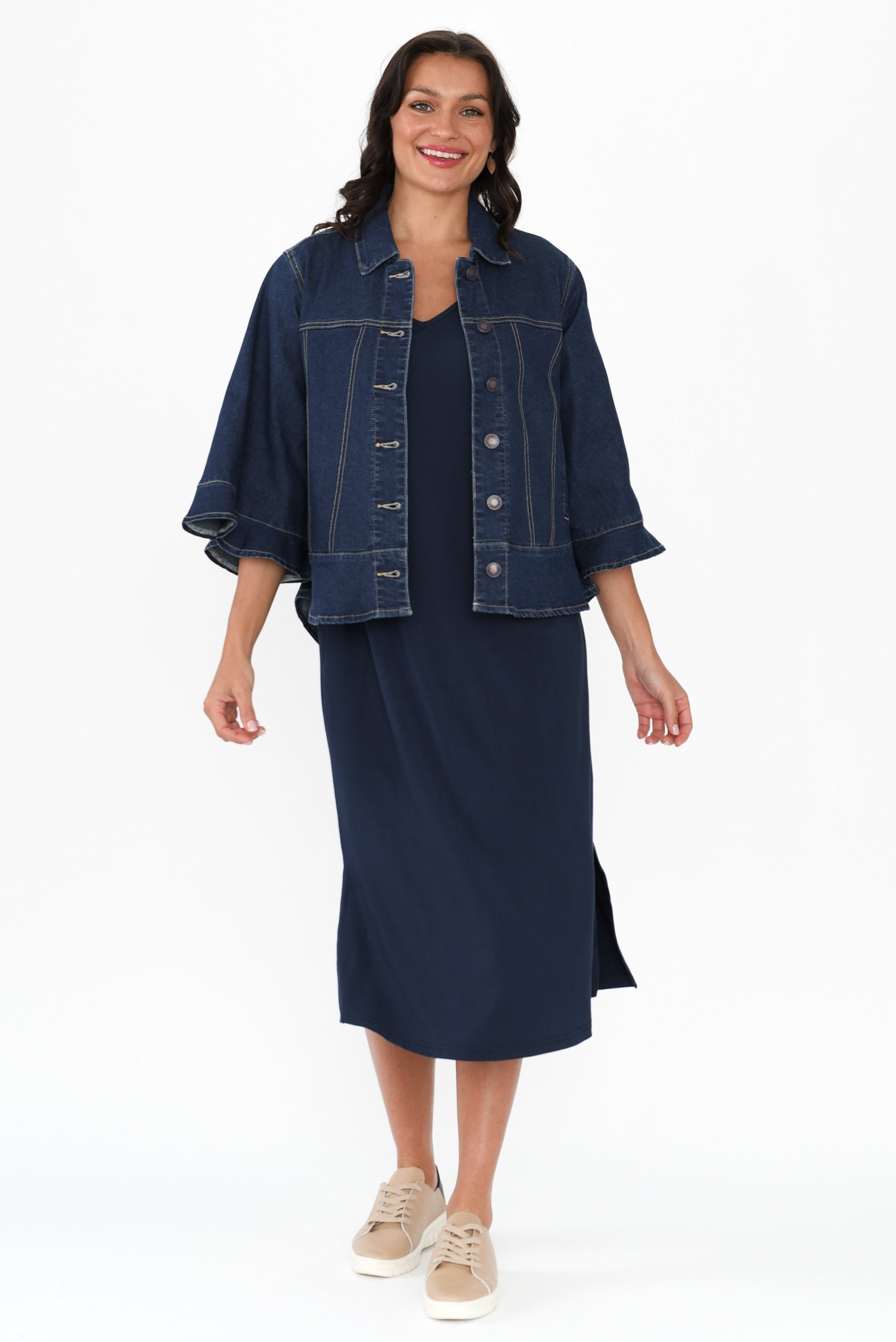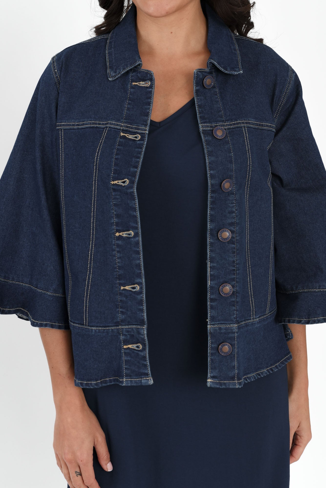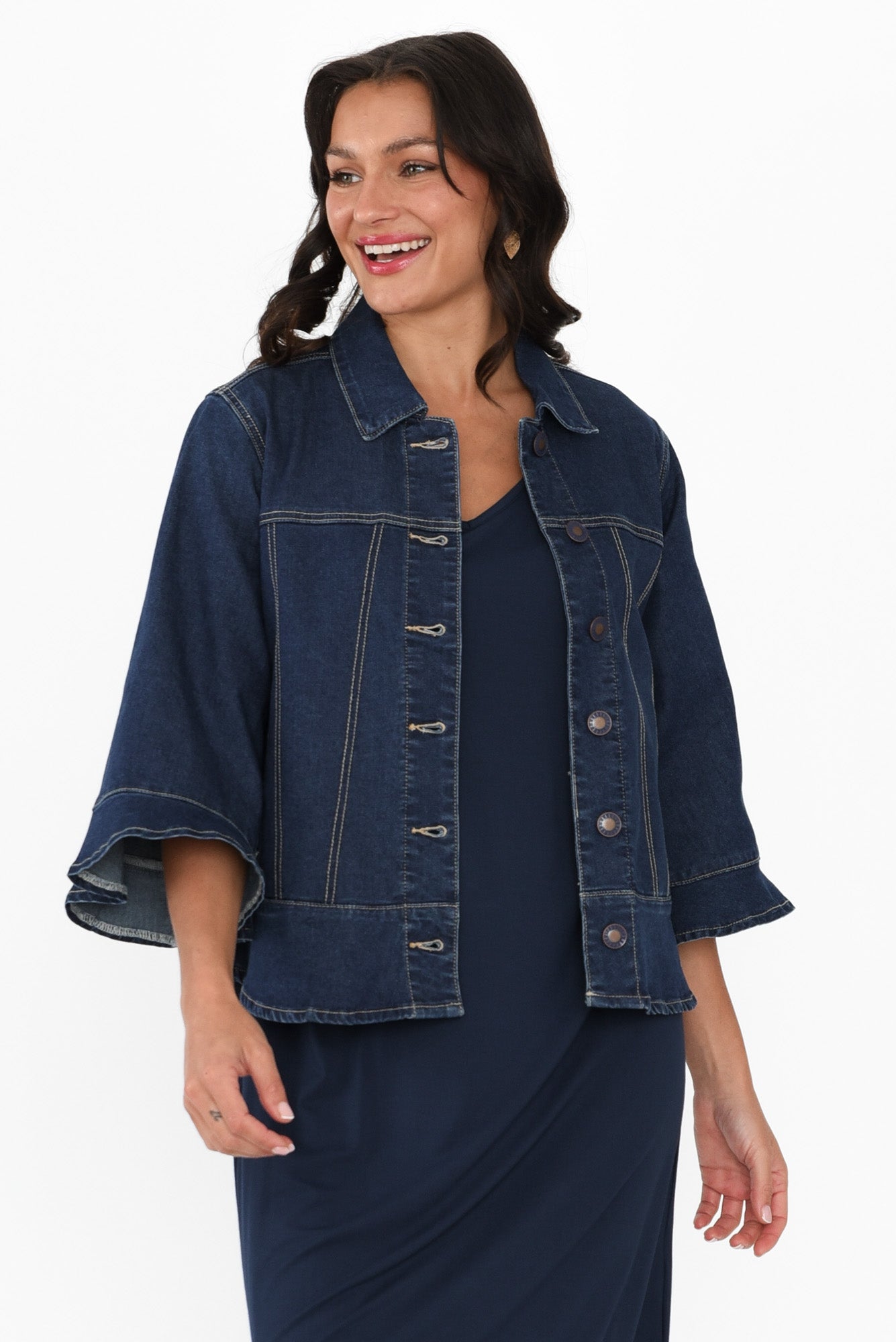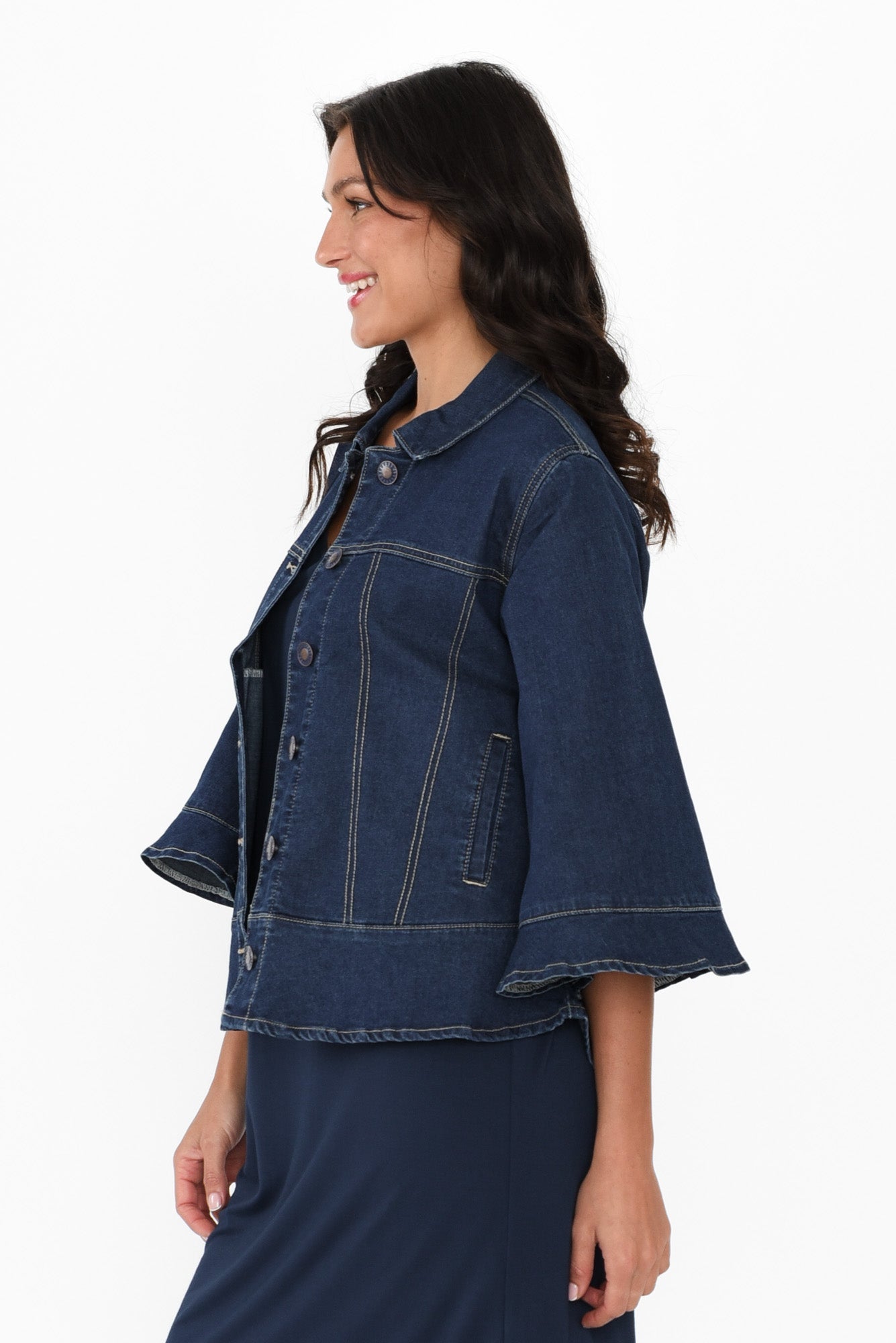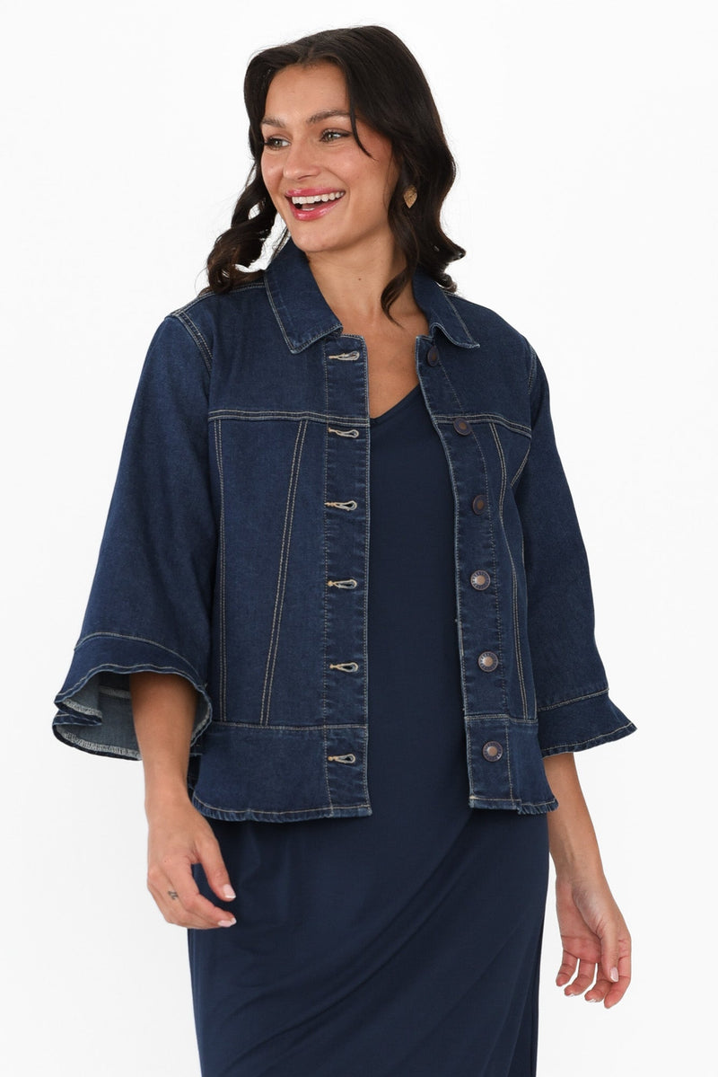 Iris Blue Denim 3/4 Sleeved Jacket