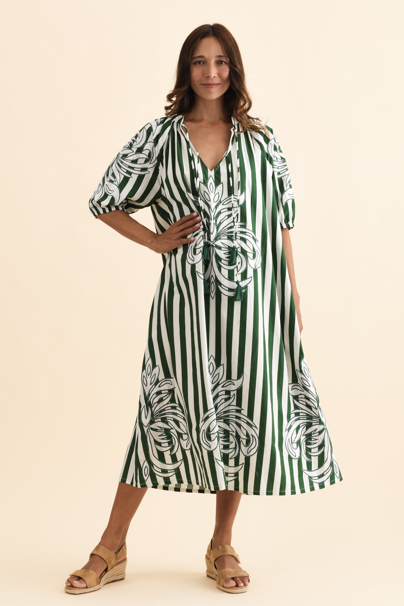 IVANKA GREEN STRIPE COTTON TIE DRESS