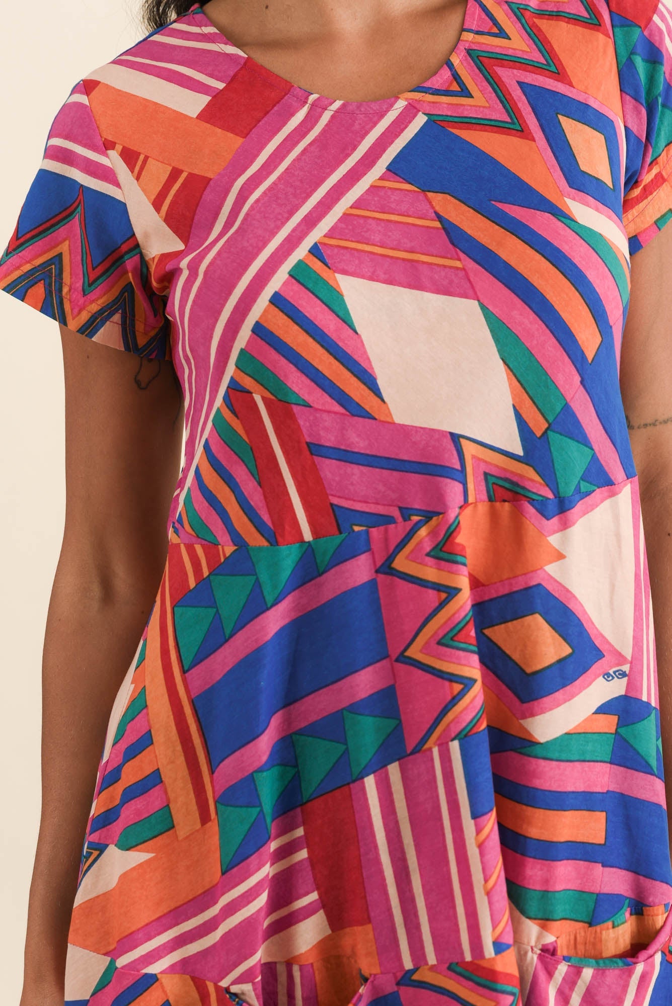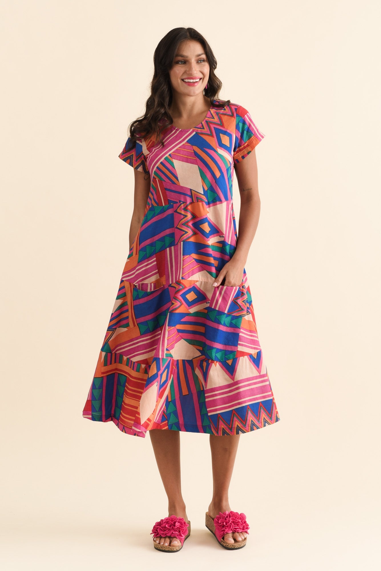 Jacinta Pink Geo Cotton Blend Dress