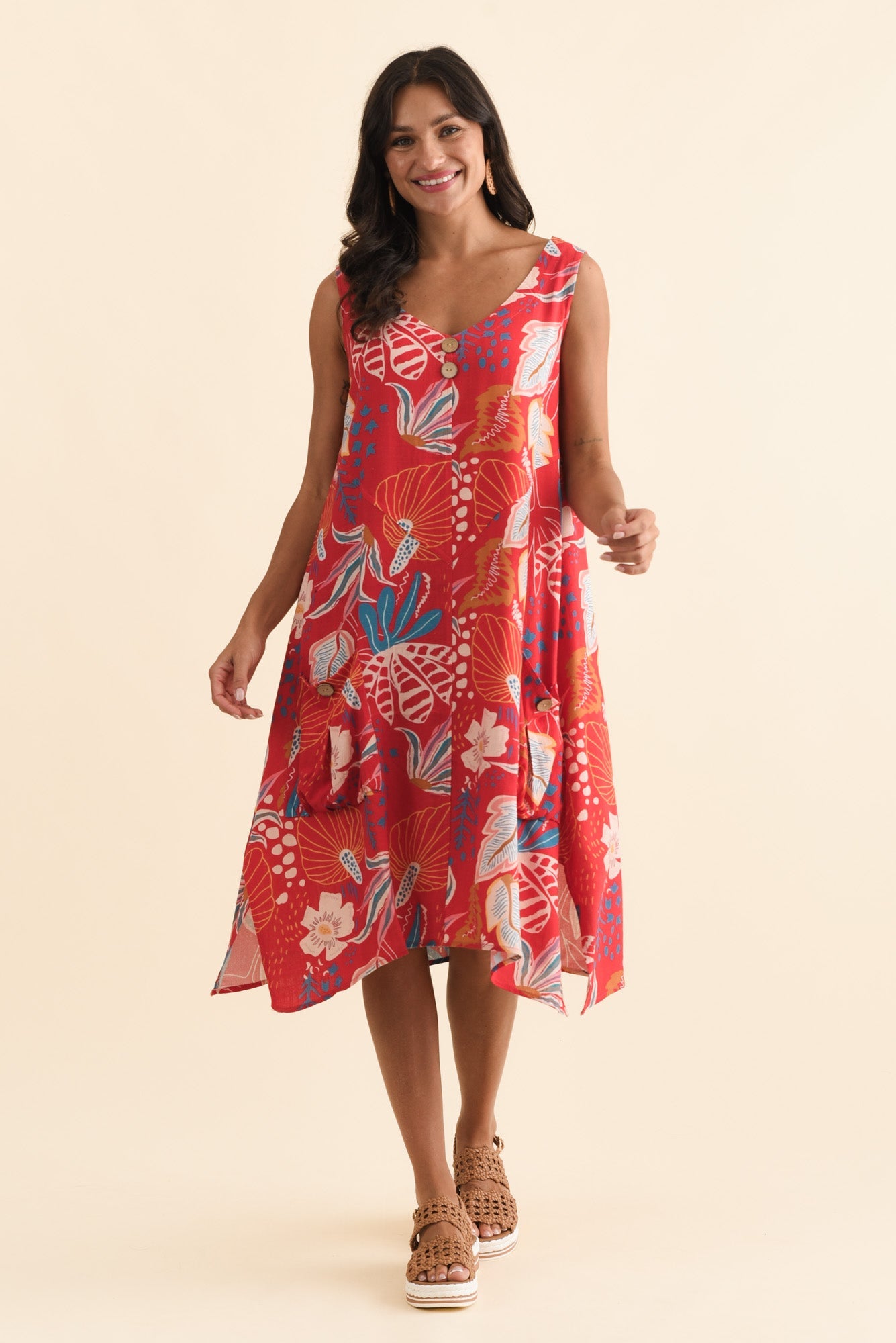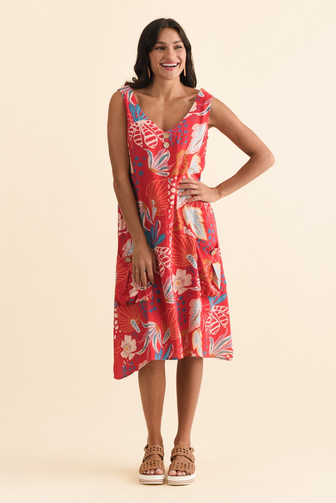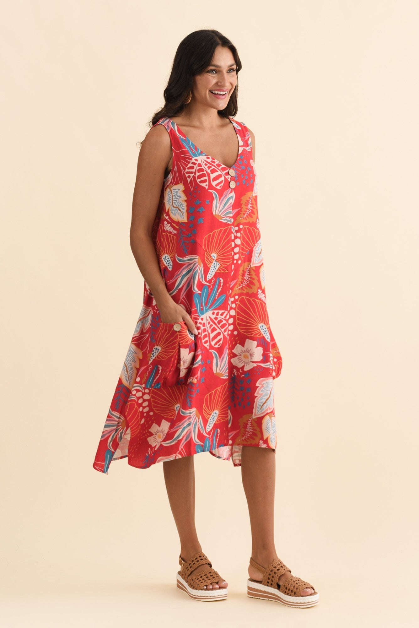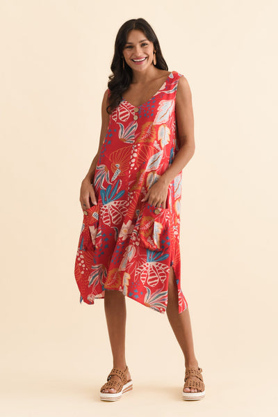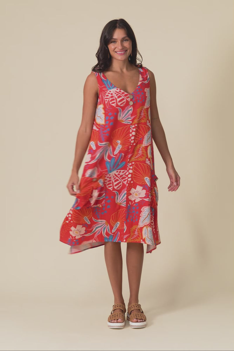 Jakine Red Botanical Linen Cotton Dress