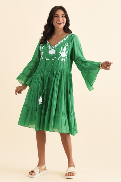JAMAICA GREEN COTTON EMBROIDERED DRESS
