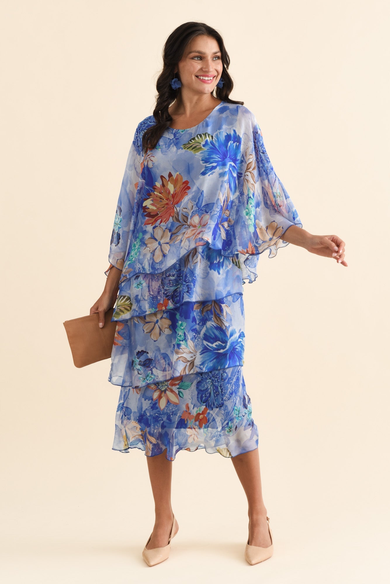 Jasmine Blue Floral Silk Layer Dress