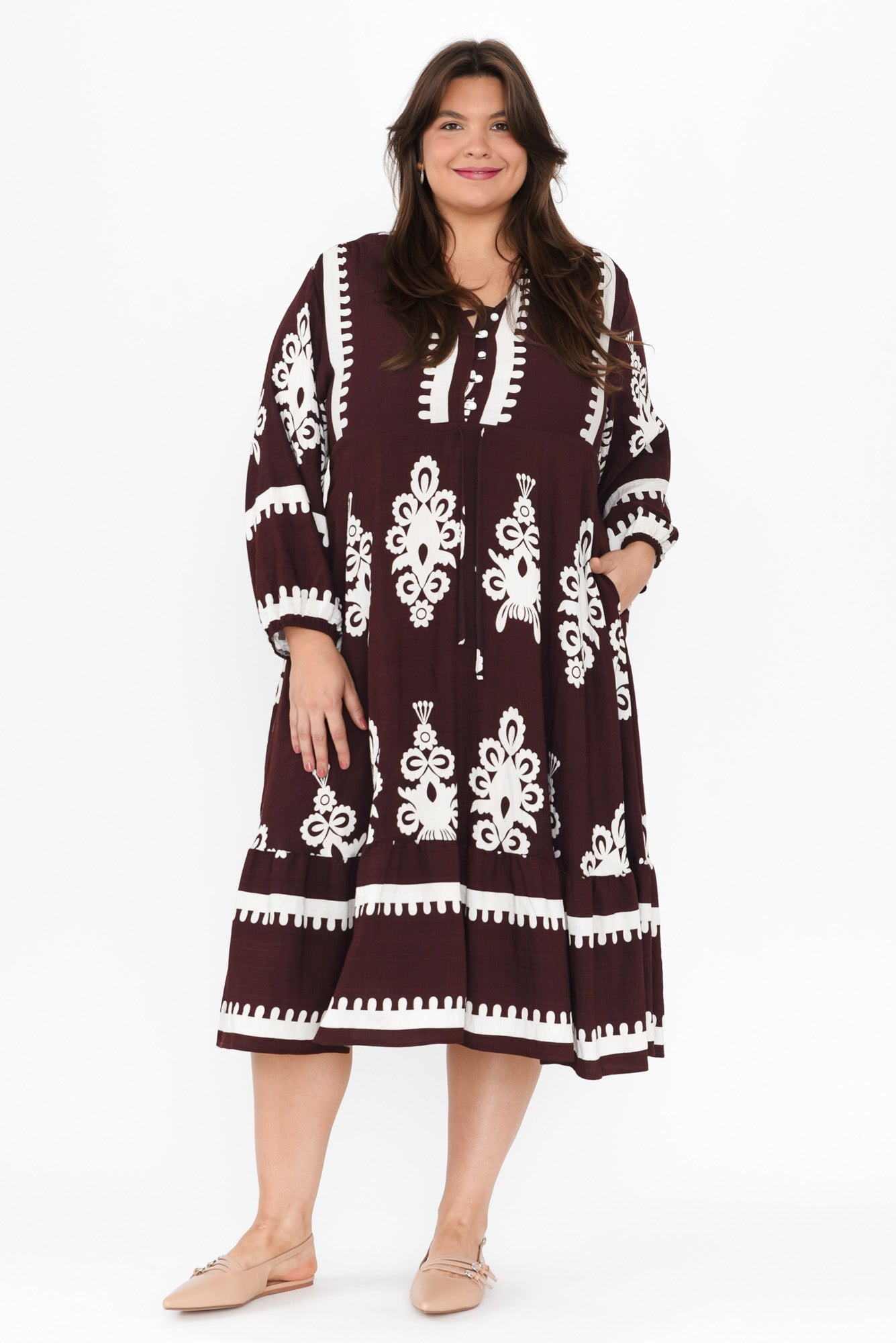 JAVIA CHOCOLATE ABSTRACT TIE DRESS