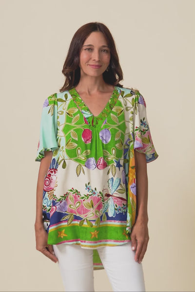 Jeannie Green Garden Flutter Sleeve Top