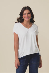 Jenner White V Neck Tee