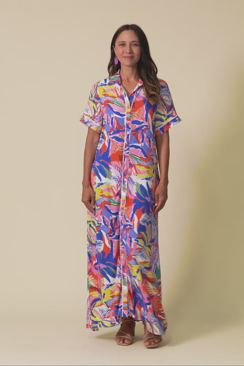 JOSSALYN BLUE JUNGLE TIE DRESS