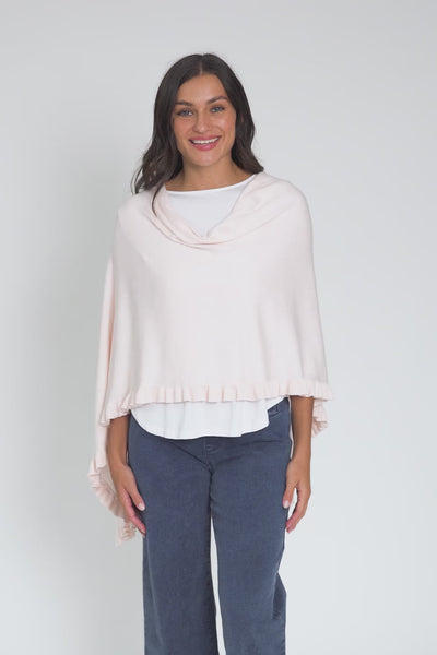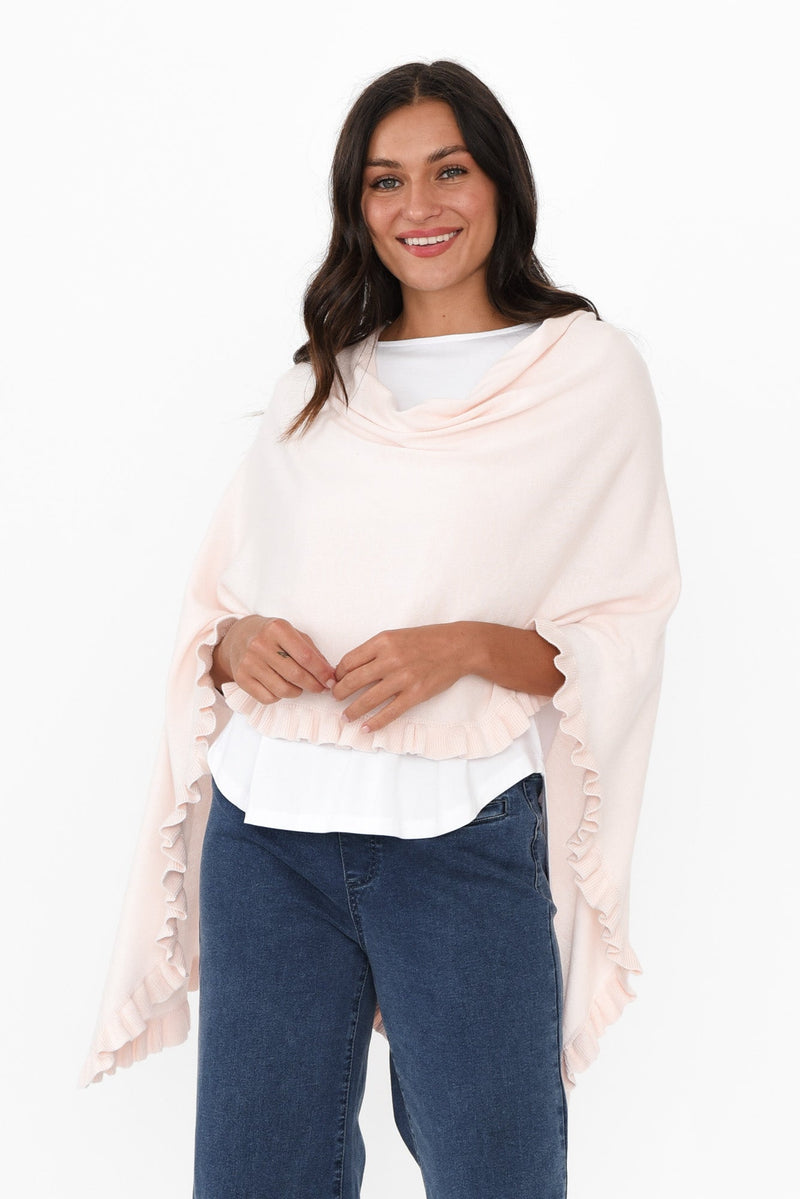 Juni Blush Cotton Cashmere Ruffle Poncho