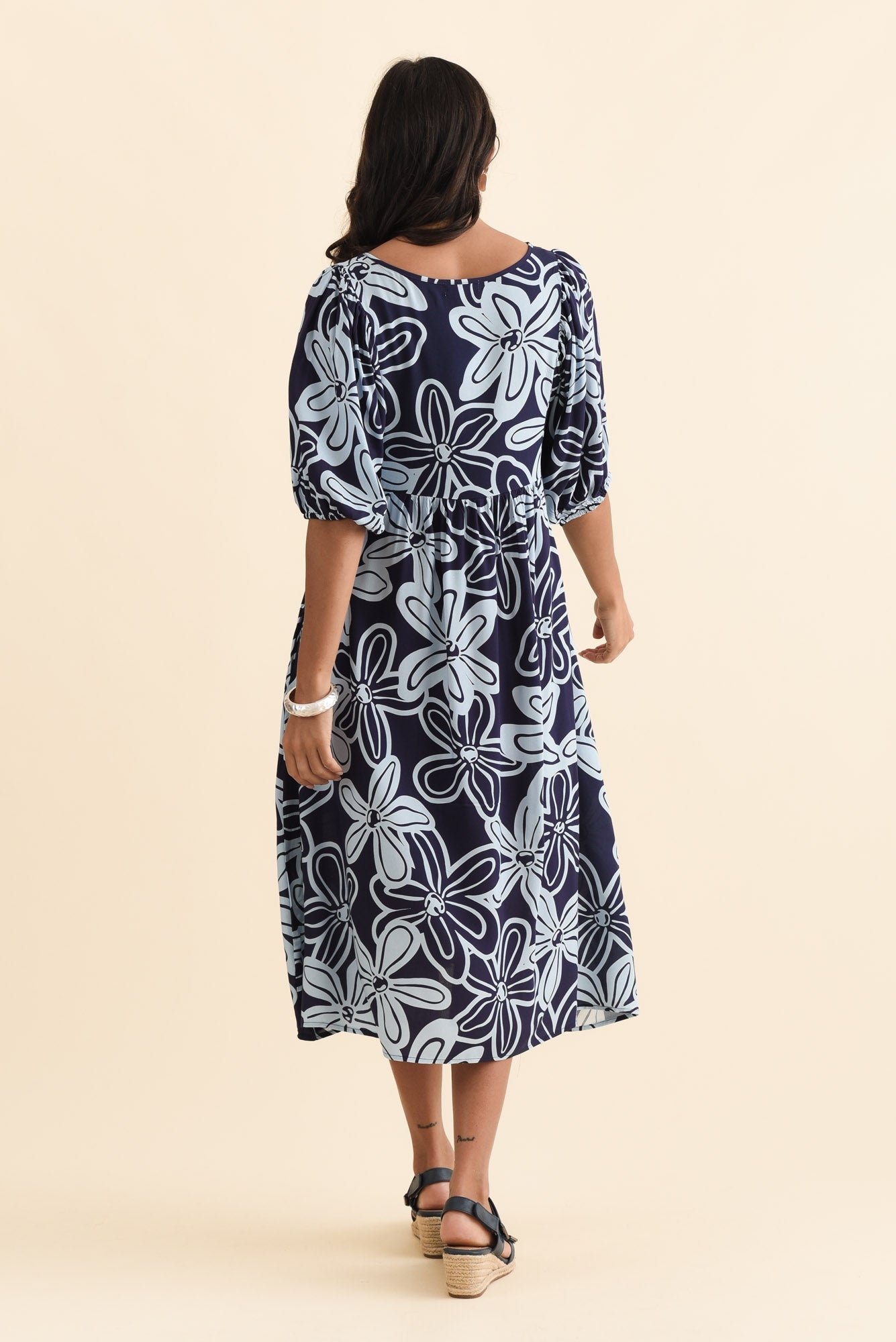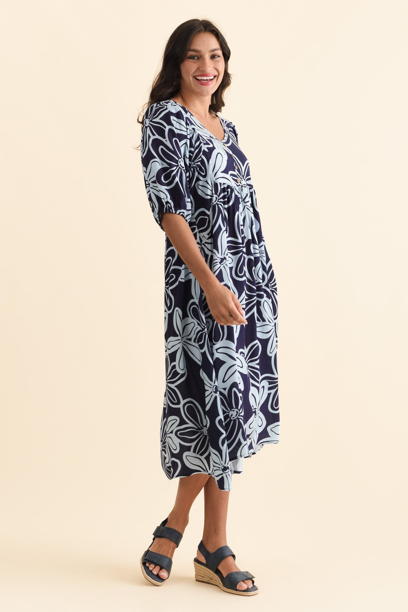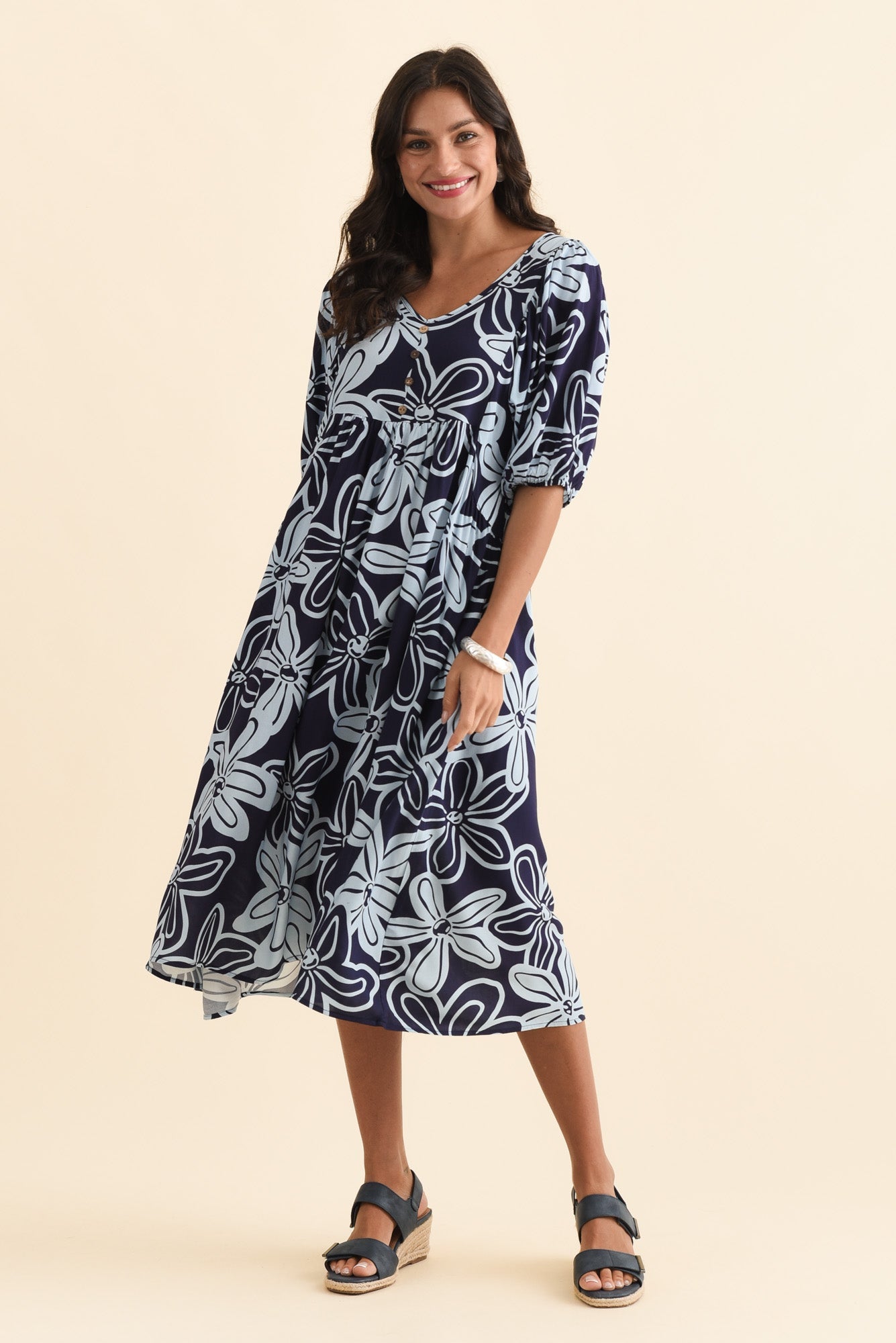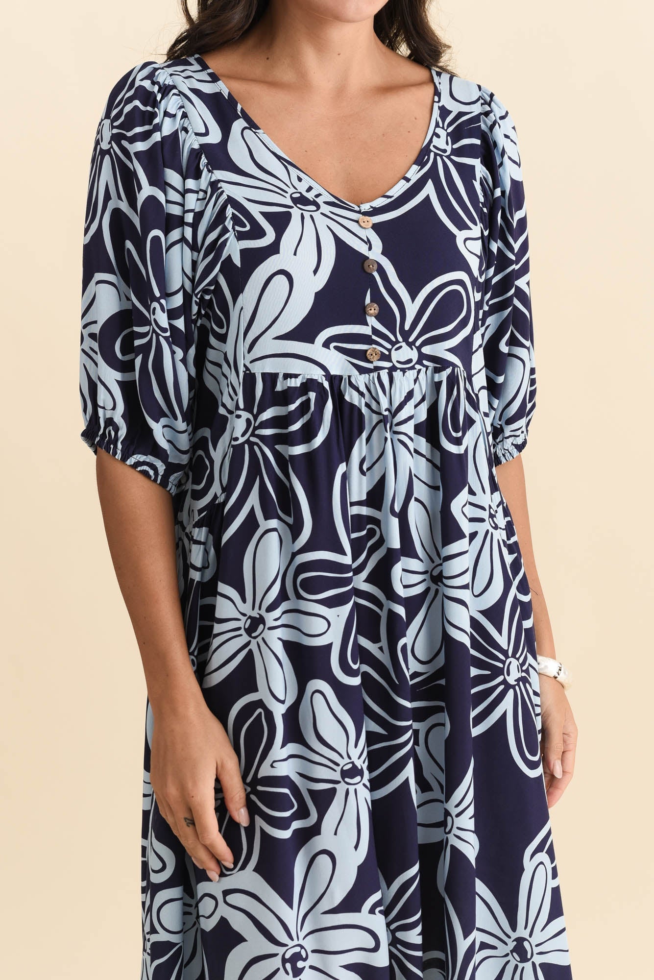 Kacey Navy Bloom Button Dress