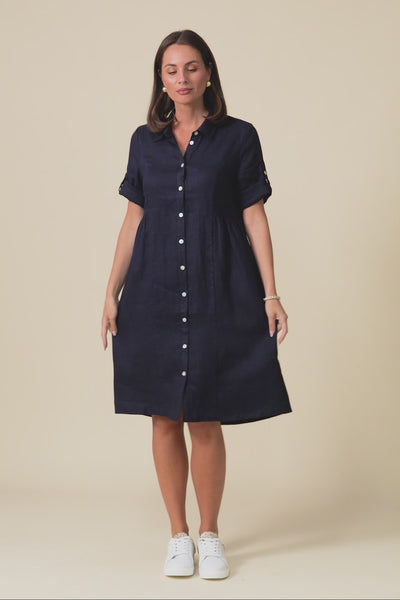 Katy Navy Linen Pocket Dress