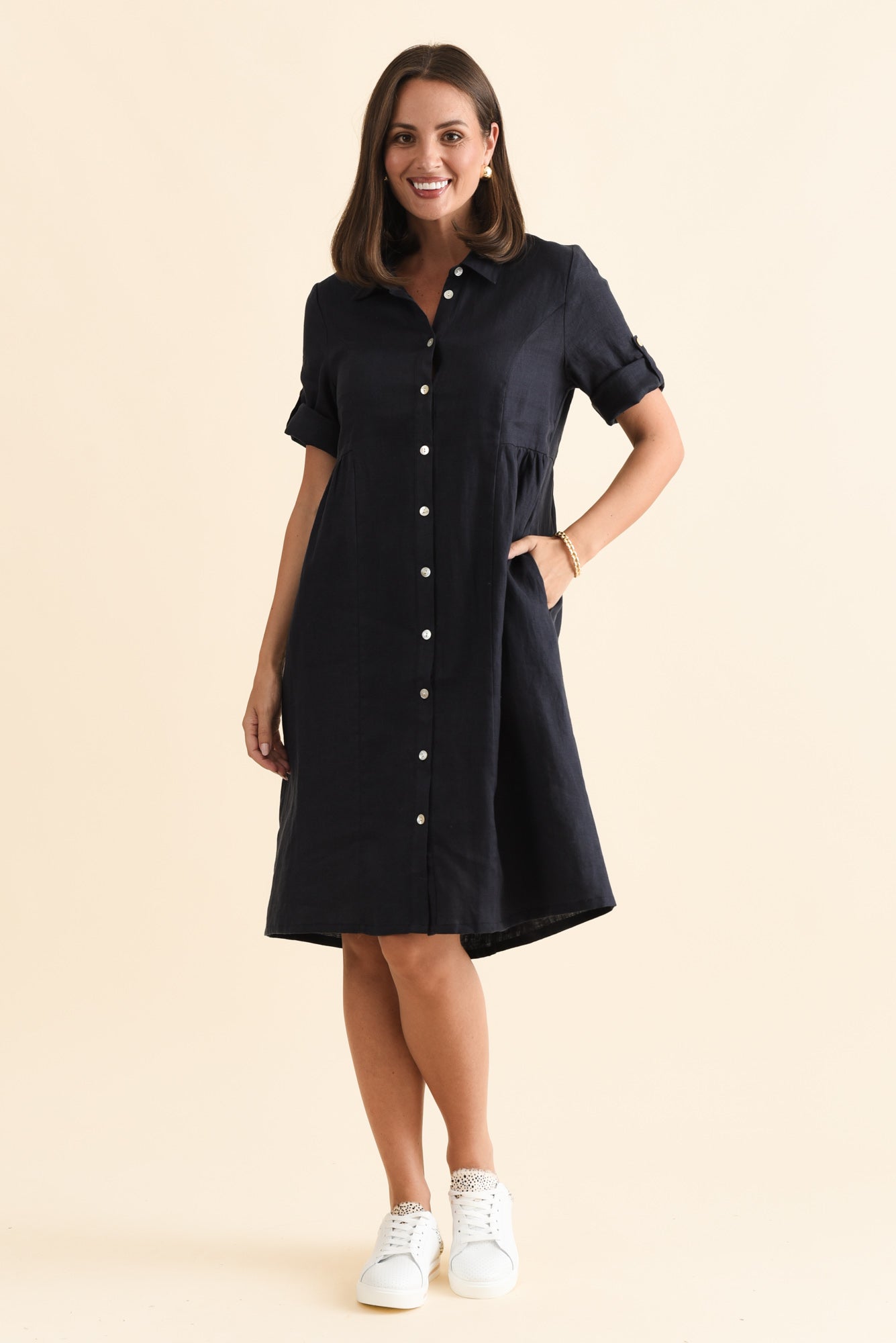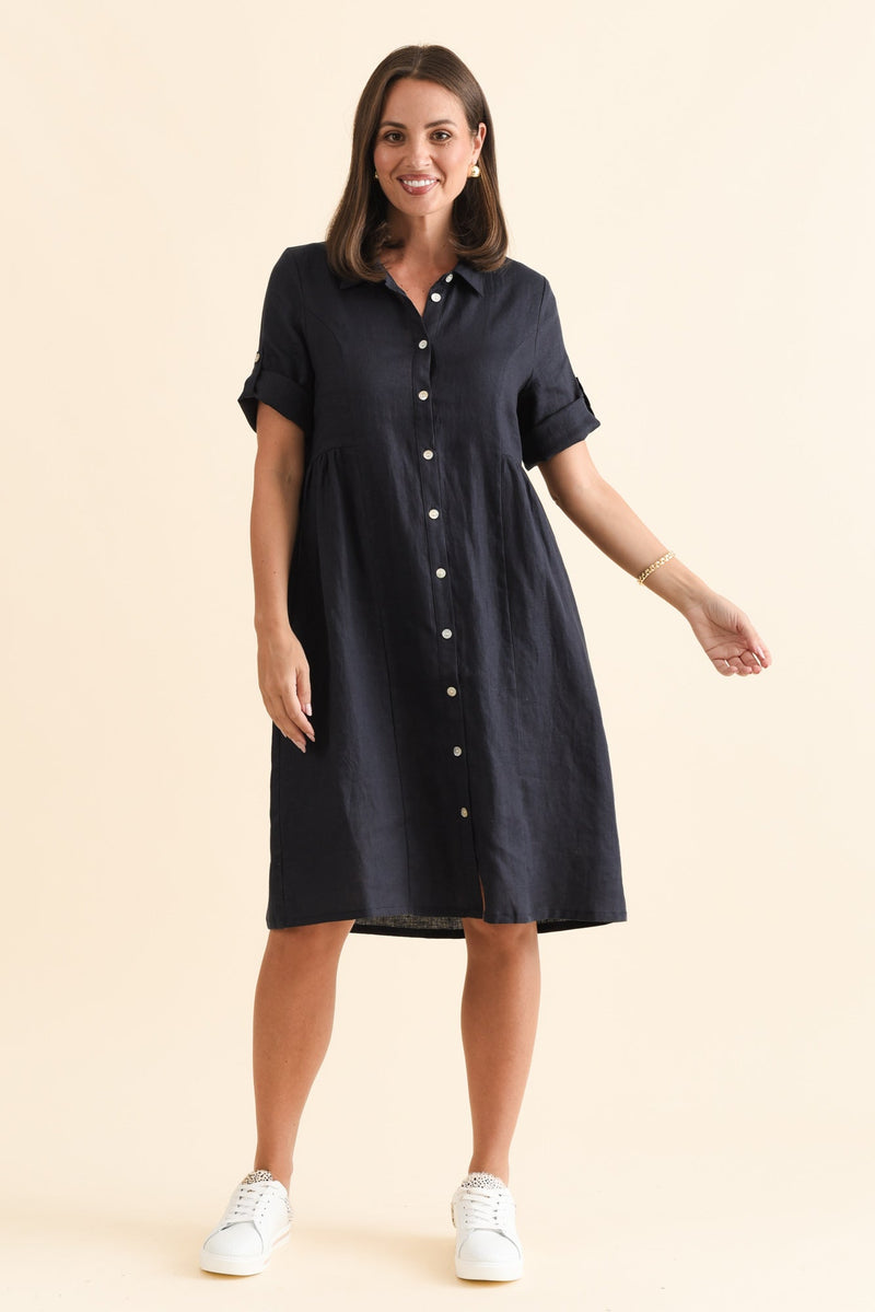 KATY NAVY LINEN POCKET DRESS