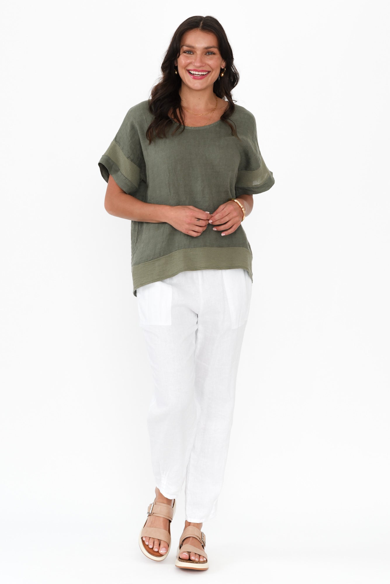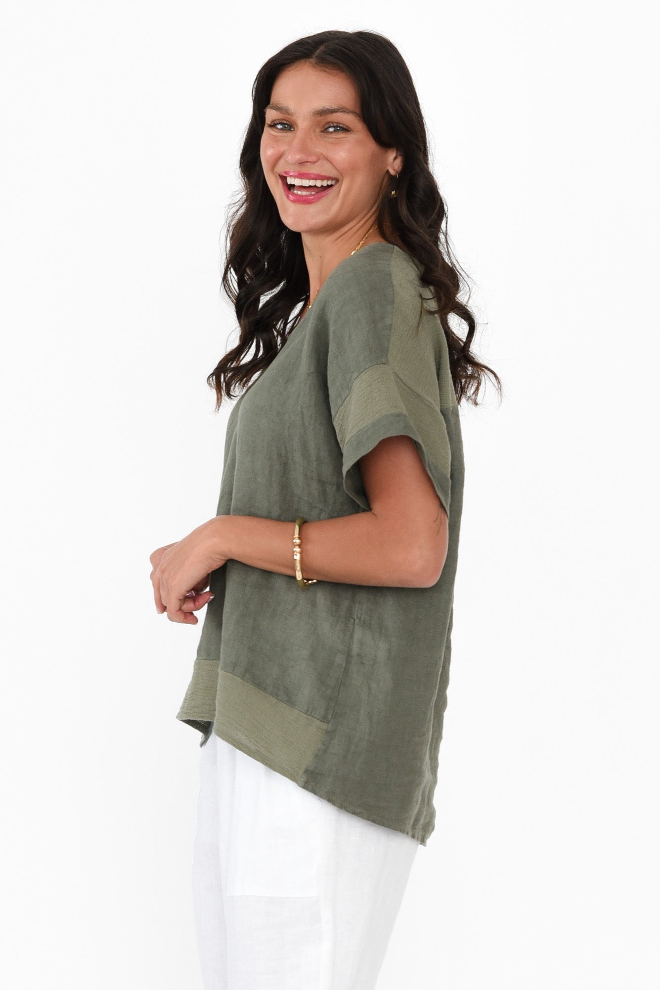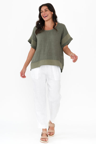 Kaya Khaki Linen Top