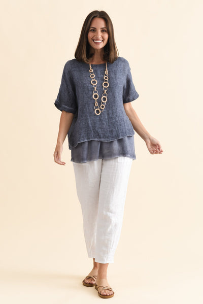 KAYLA DARK BLUE LINEN LAYERED TOP