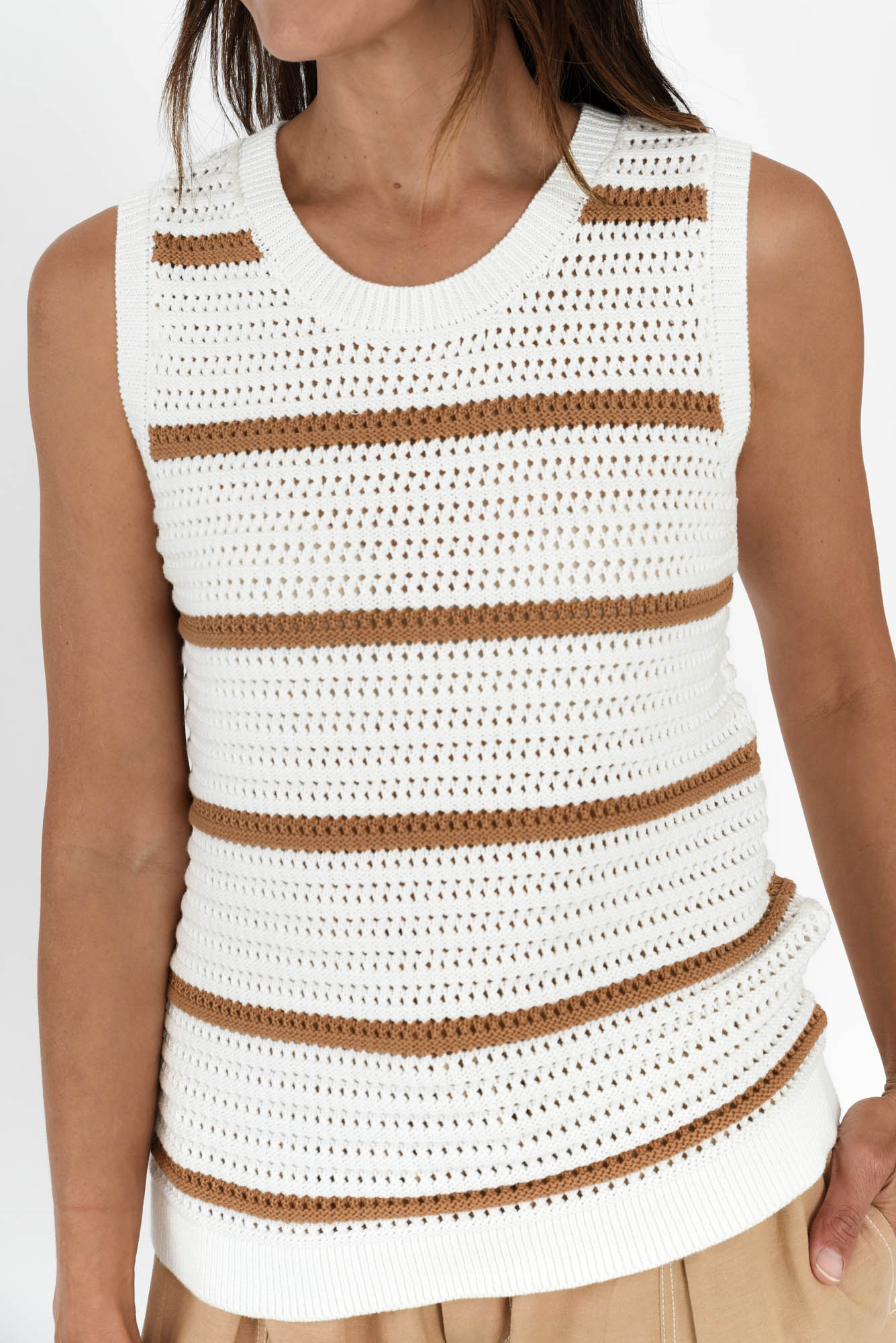 Kenali White Stripe Cotton Knit Tank