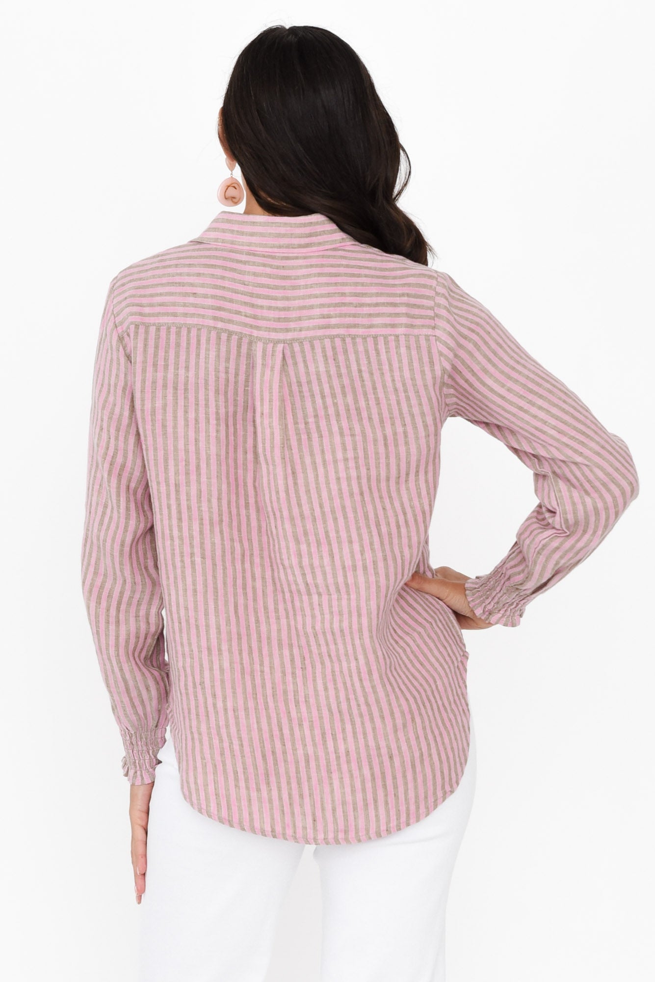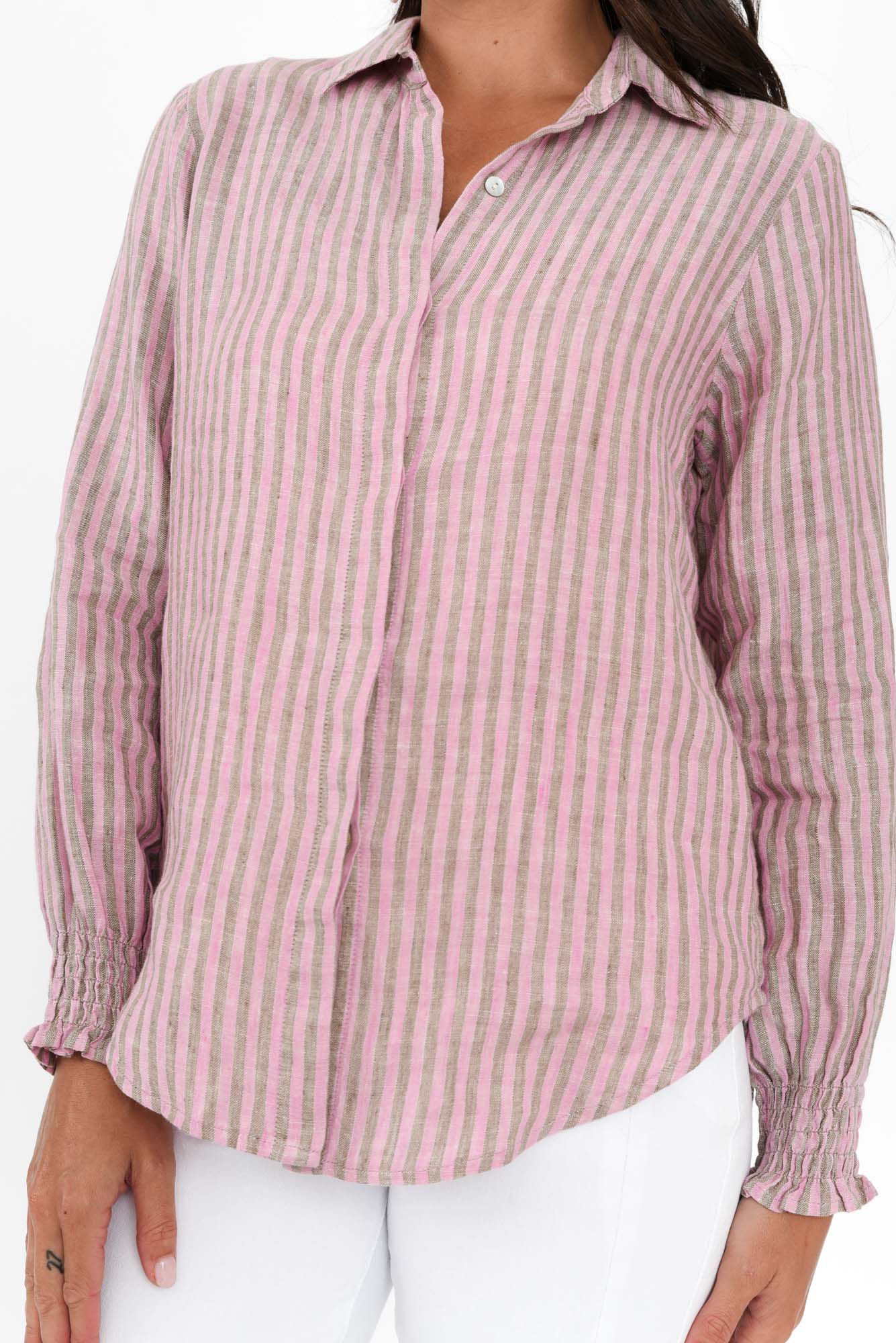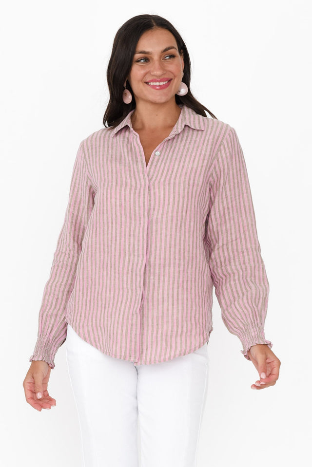 Kendo Pink Stripe Linen Collared Shirt