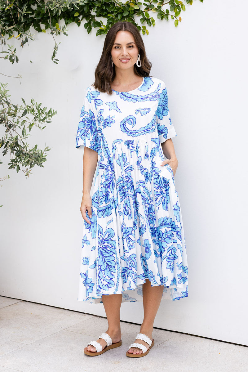 Kiana Blue Paisley Peak Dress