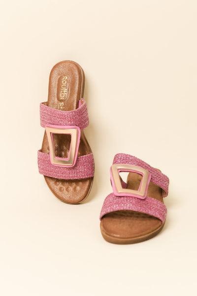 KIMBERLEY PINK RAFFIA BUCKLE SLIDE