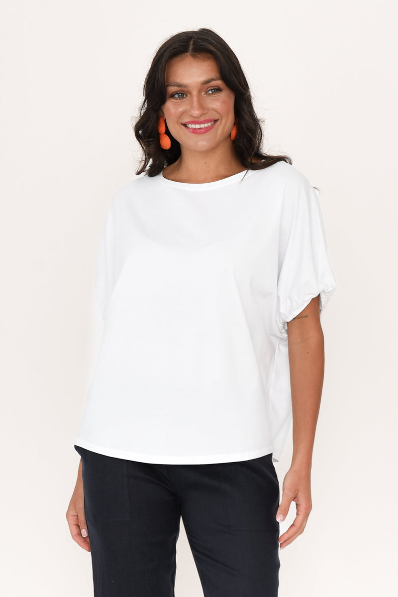 KIMIKO WHITE COTTON PUFF SLEEVE TEE