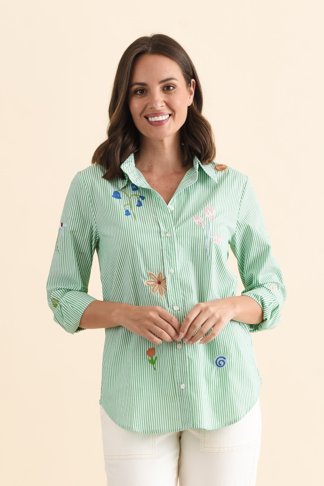 KIMMIE GREEN STRIPE COTTON SHIRT