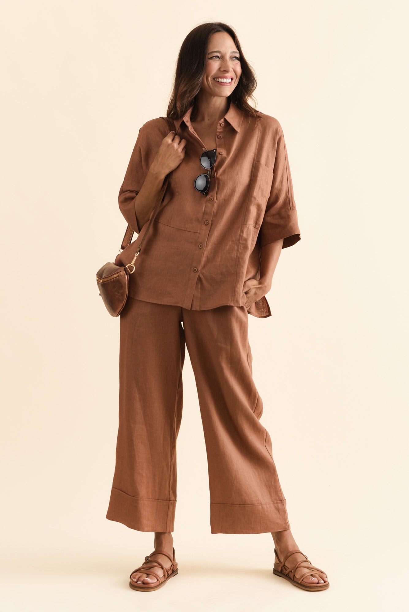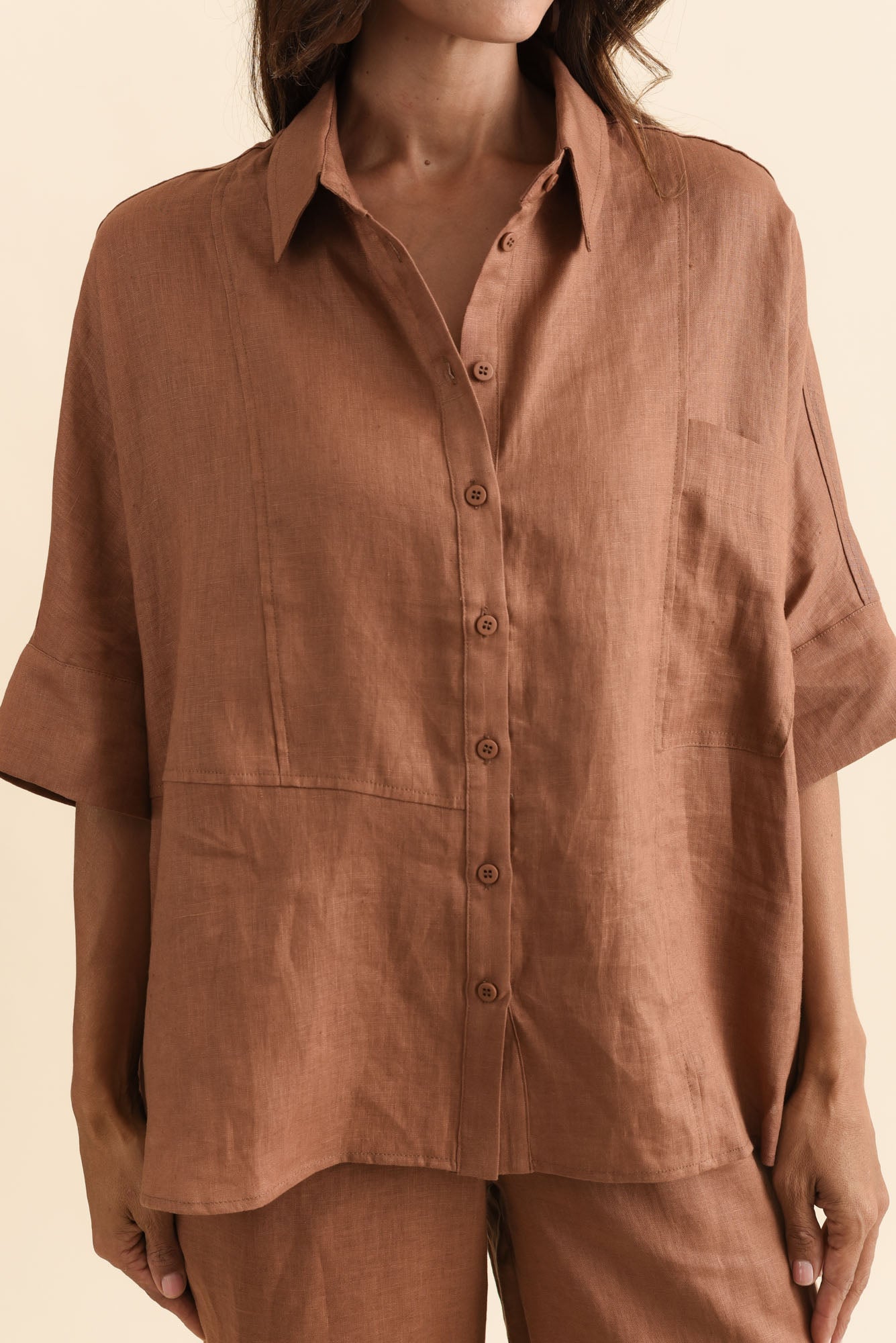 LANDON MOCHA LINEN SHORT SLEEVE SHIRT