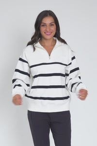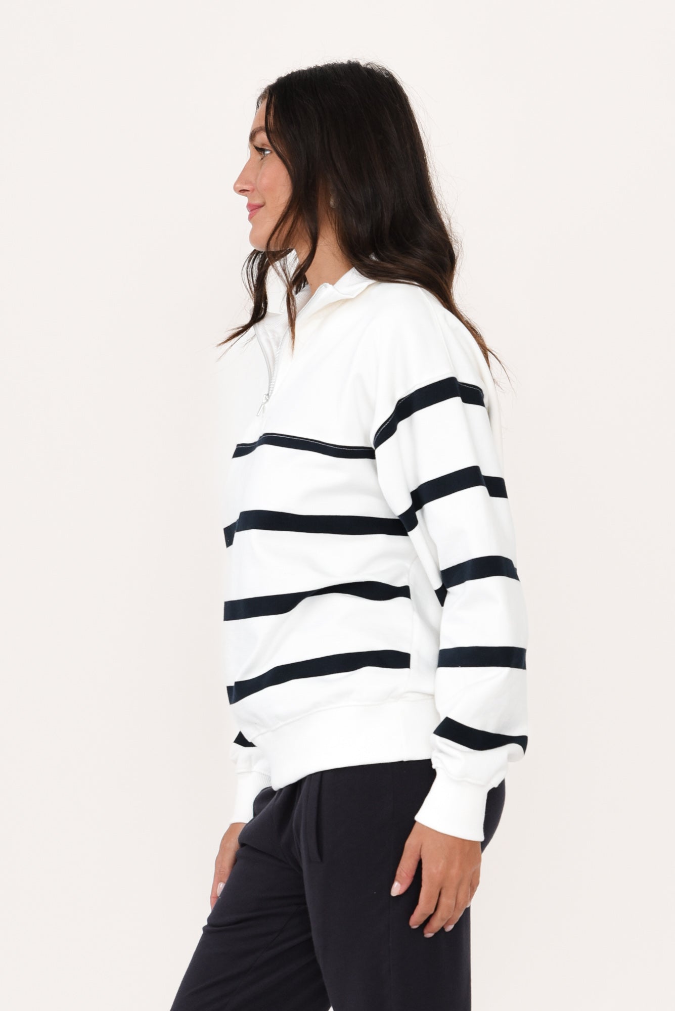 LANE WHITE STRIPE HALF ZIP SWEATSHIRT