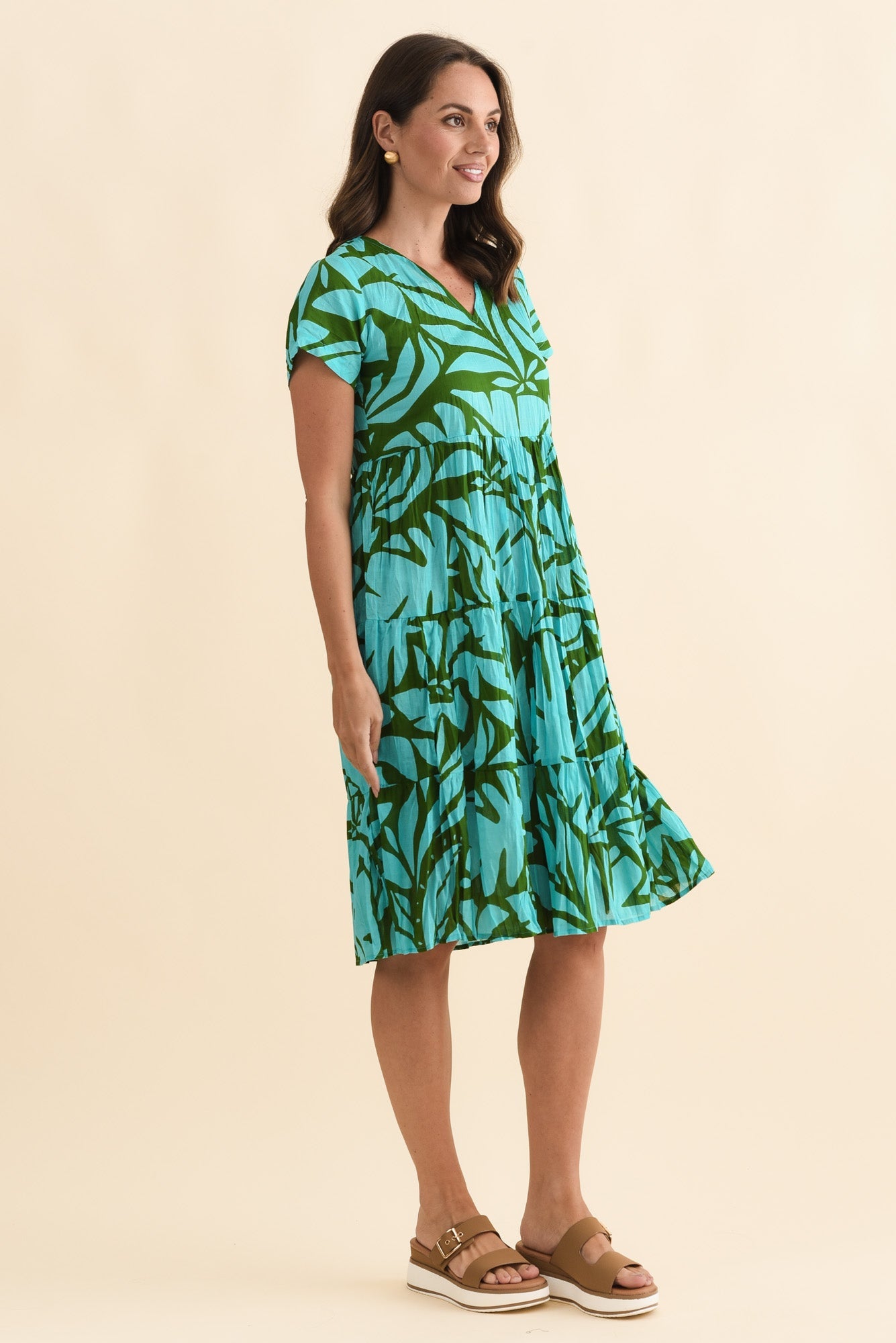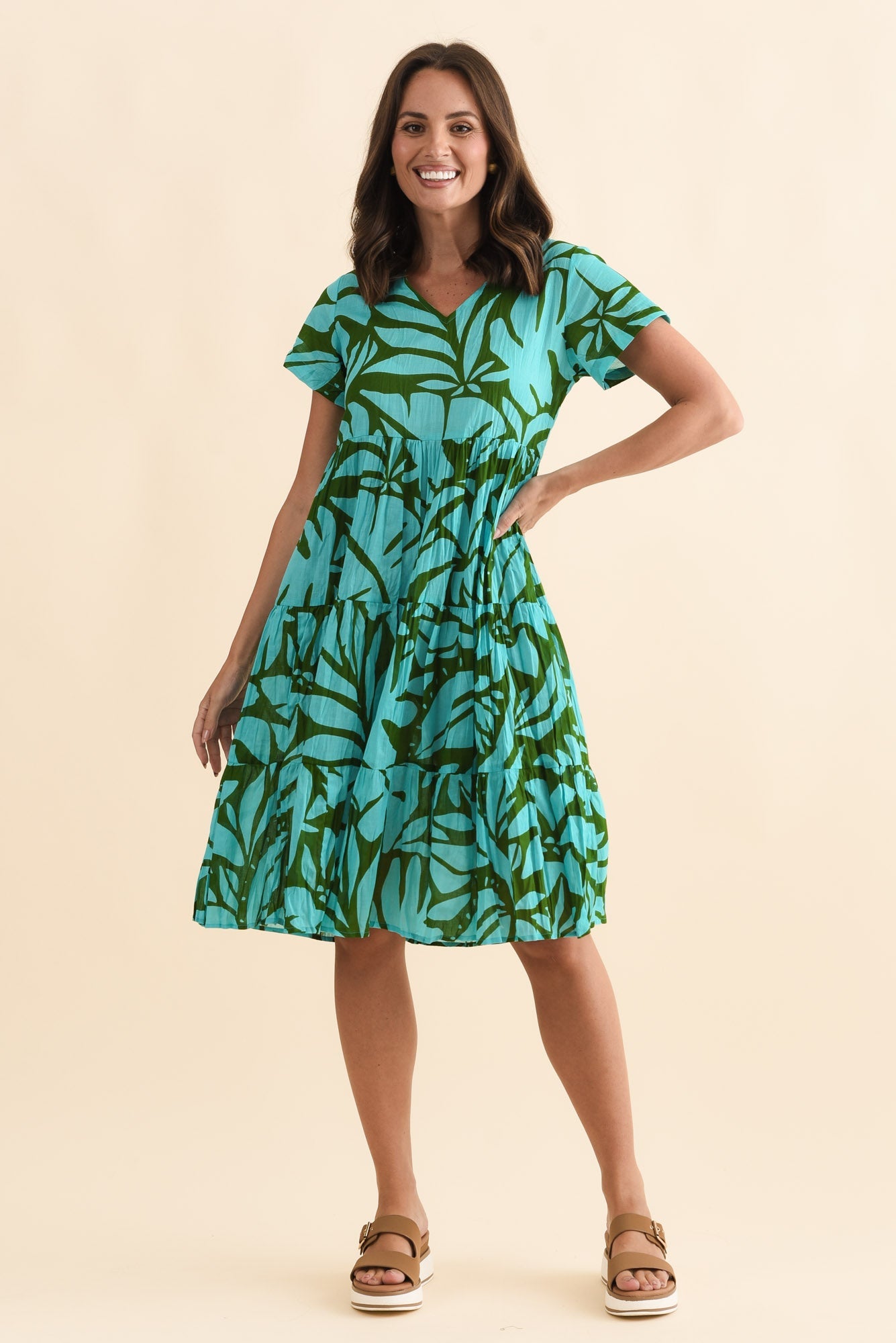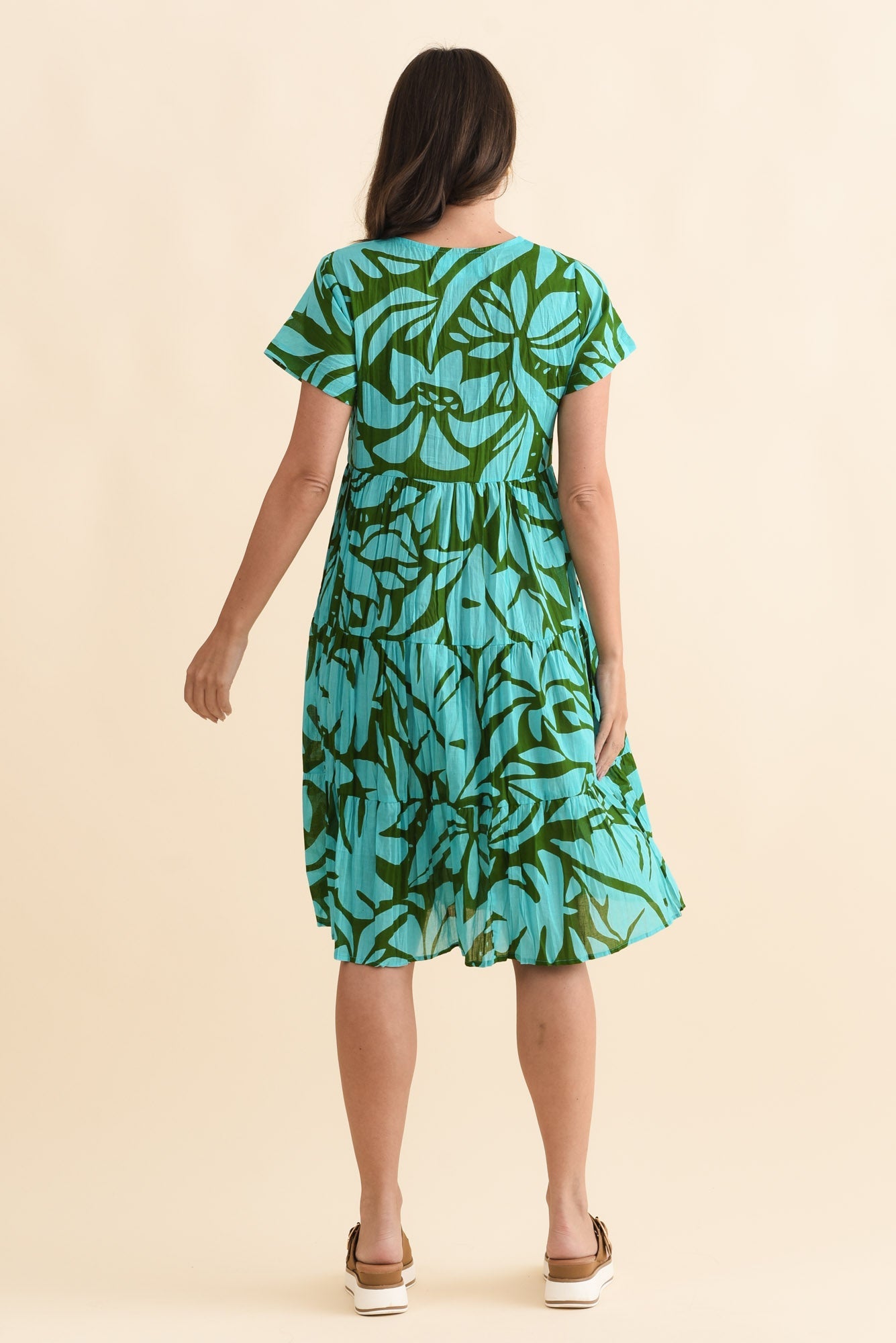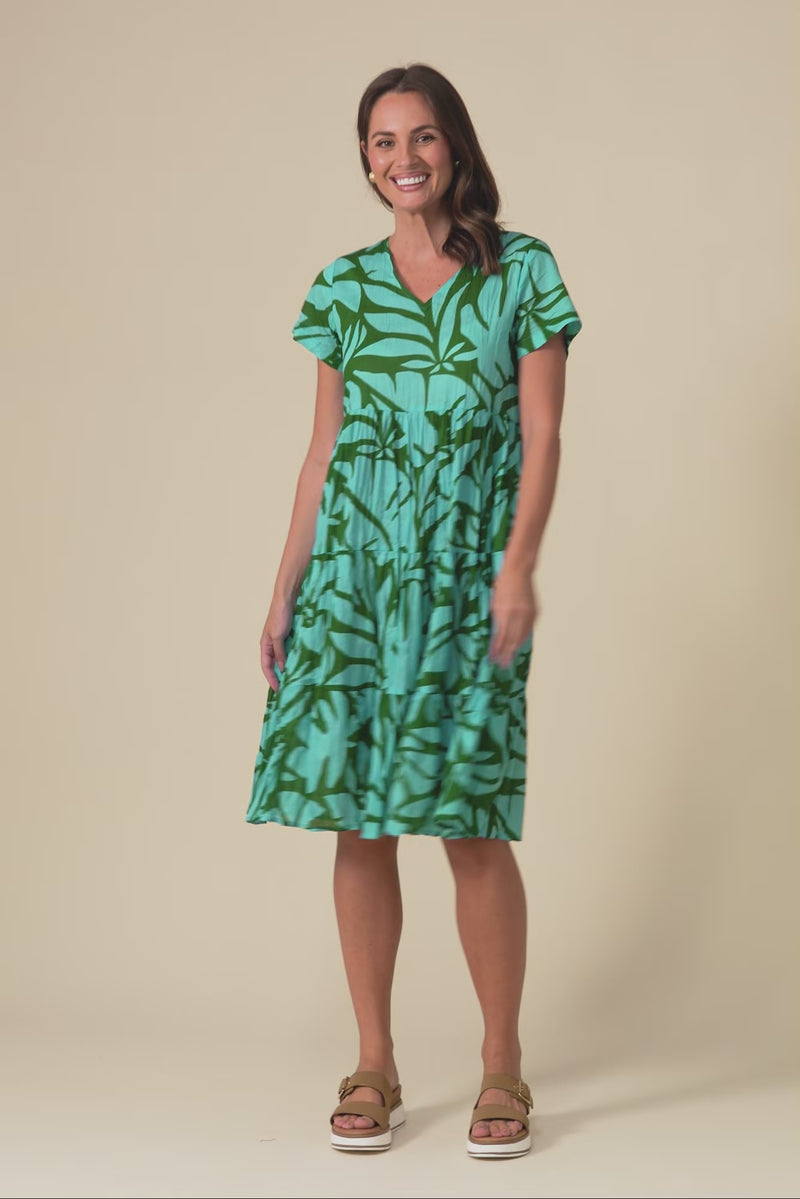 Lania Aqua Botanical Crinkle Cotton Dress