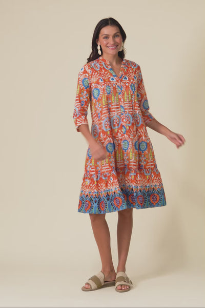 Larissa Orange Motif Cotton Pleated Dress