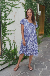 Lauren Navy Speckle Crinkle Cotton Dress