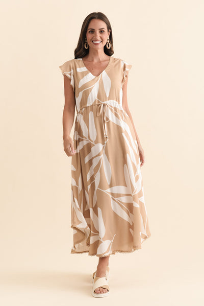 Libby Mocha Leaf Midi Dress