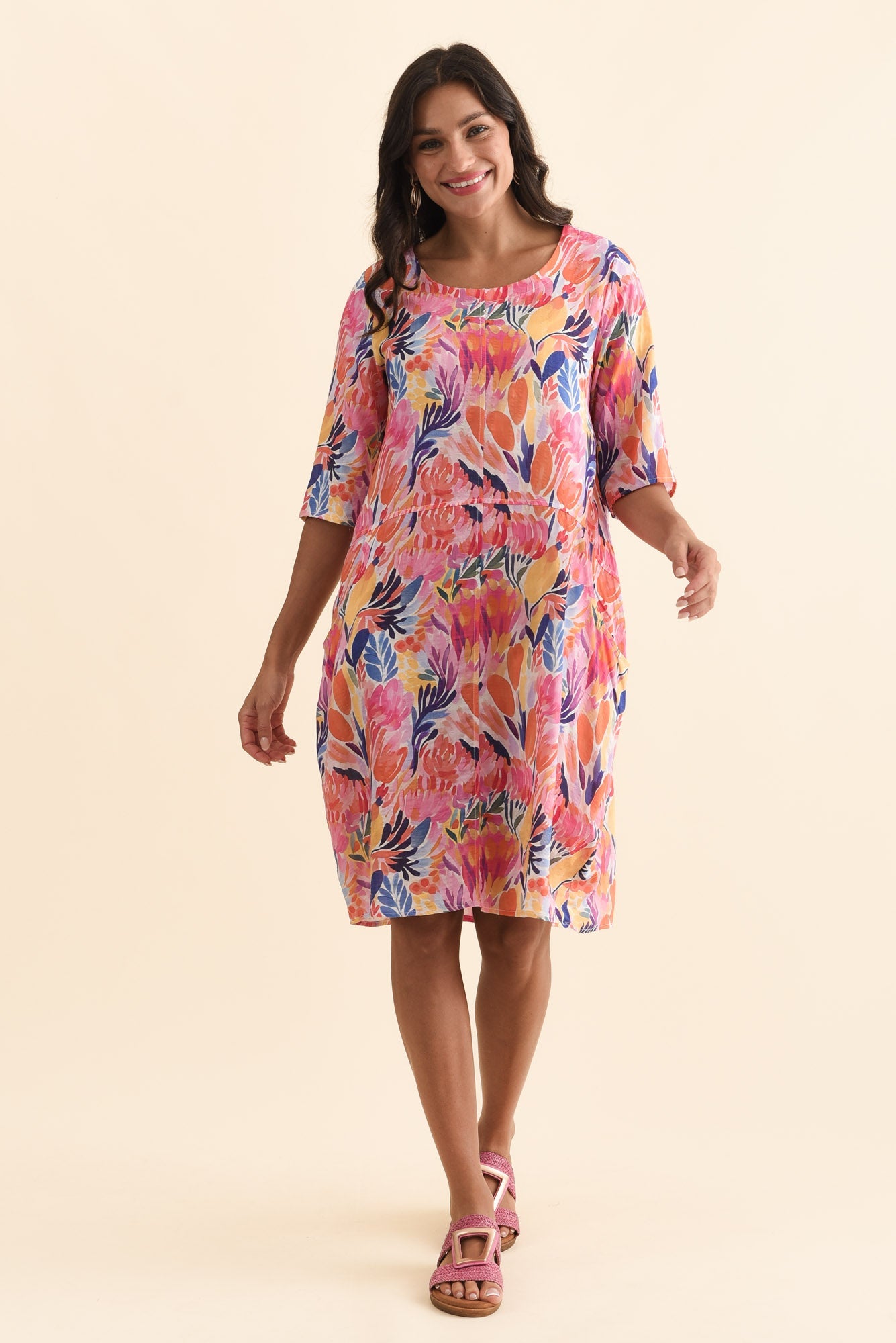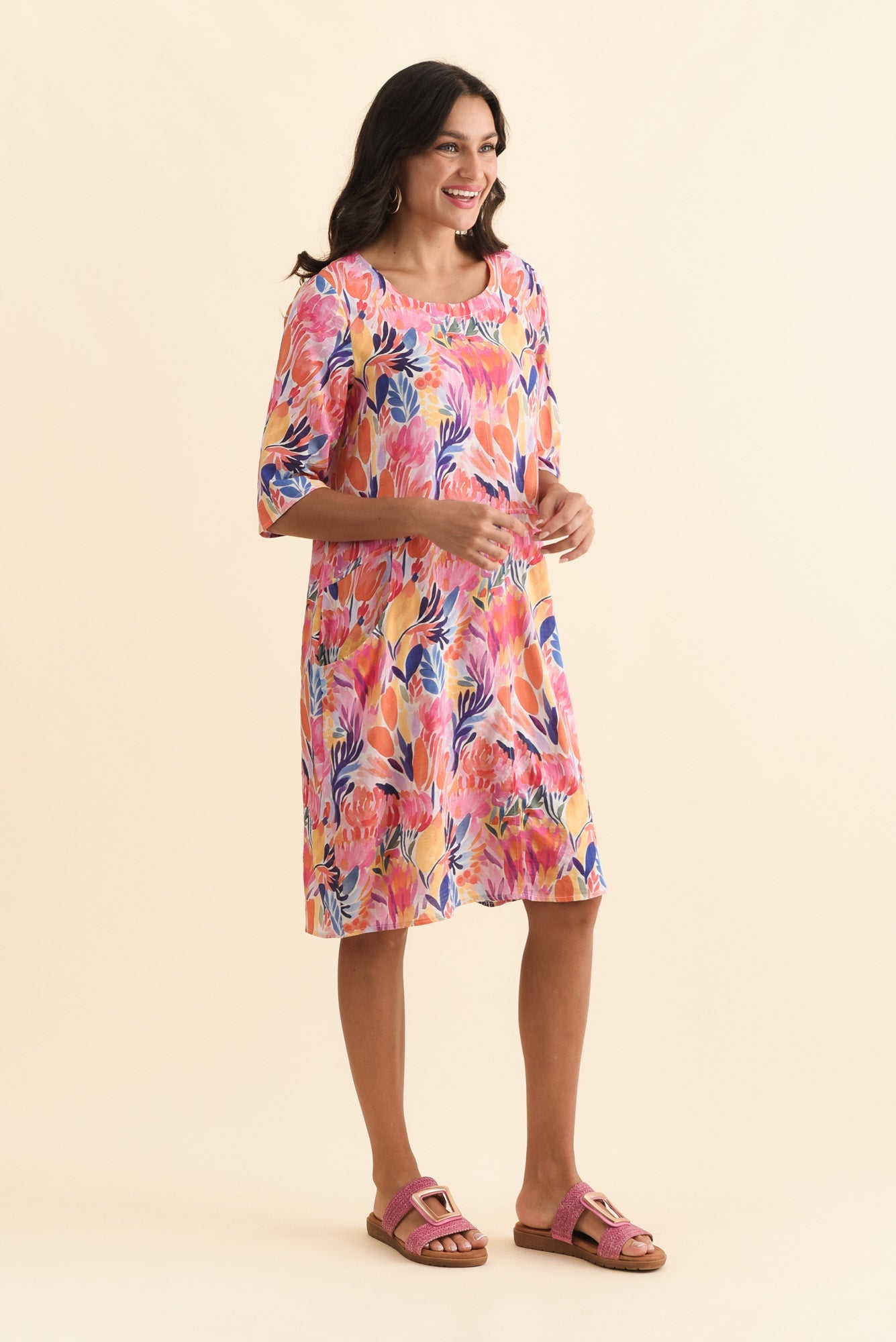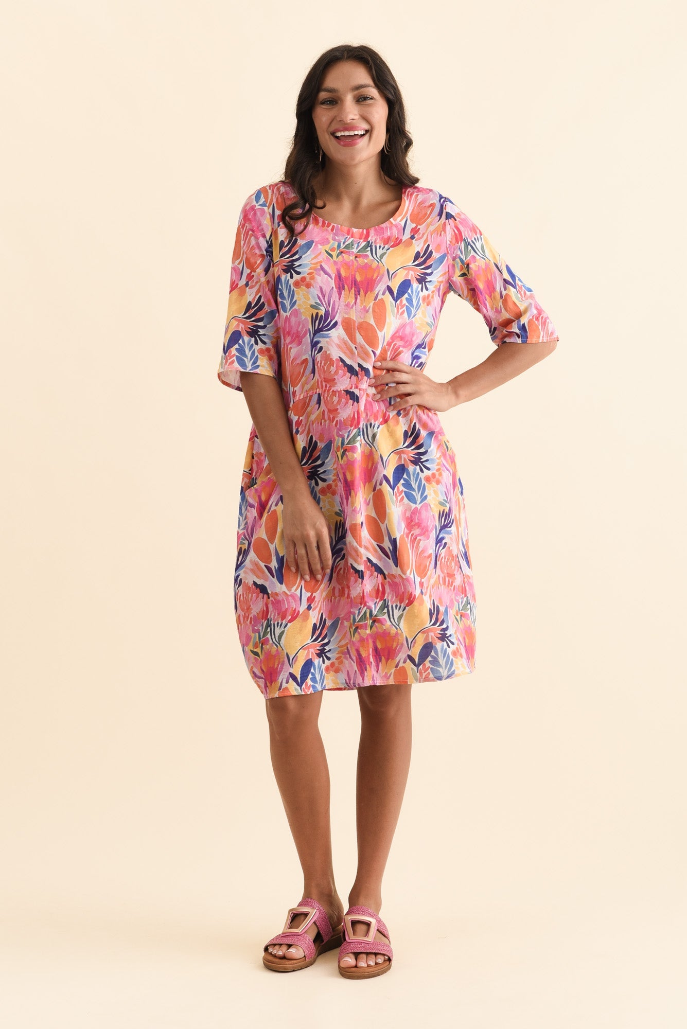 Lilibet Orange Flower Cotton Pocket Dress